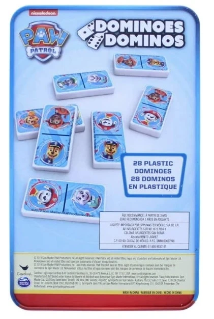Paw Patrol dominoes in storage tin by Cardinal Games 28 plastic pieces Brand New Sealed is on sale for $20 00 cash. $70.85 @amazon.ca. Thank you for viewing my ads .