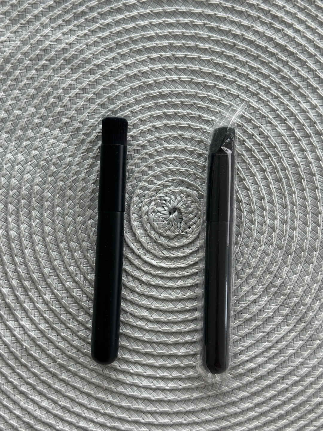 2 for $1. High quality black makeup brushes. Short handles, black bristles, soft. I have about 50 of them.