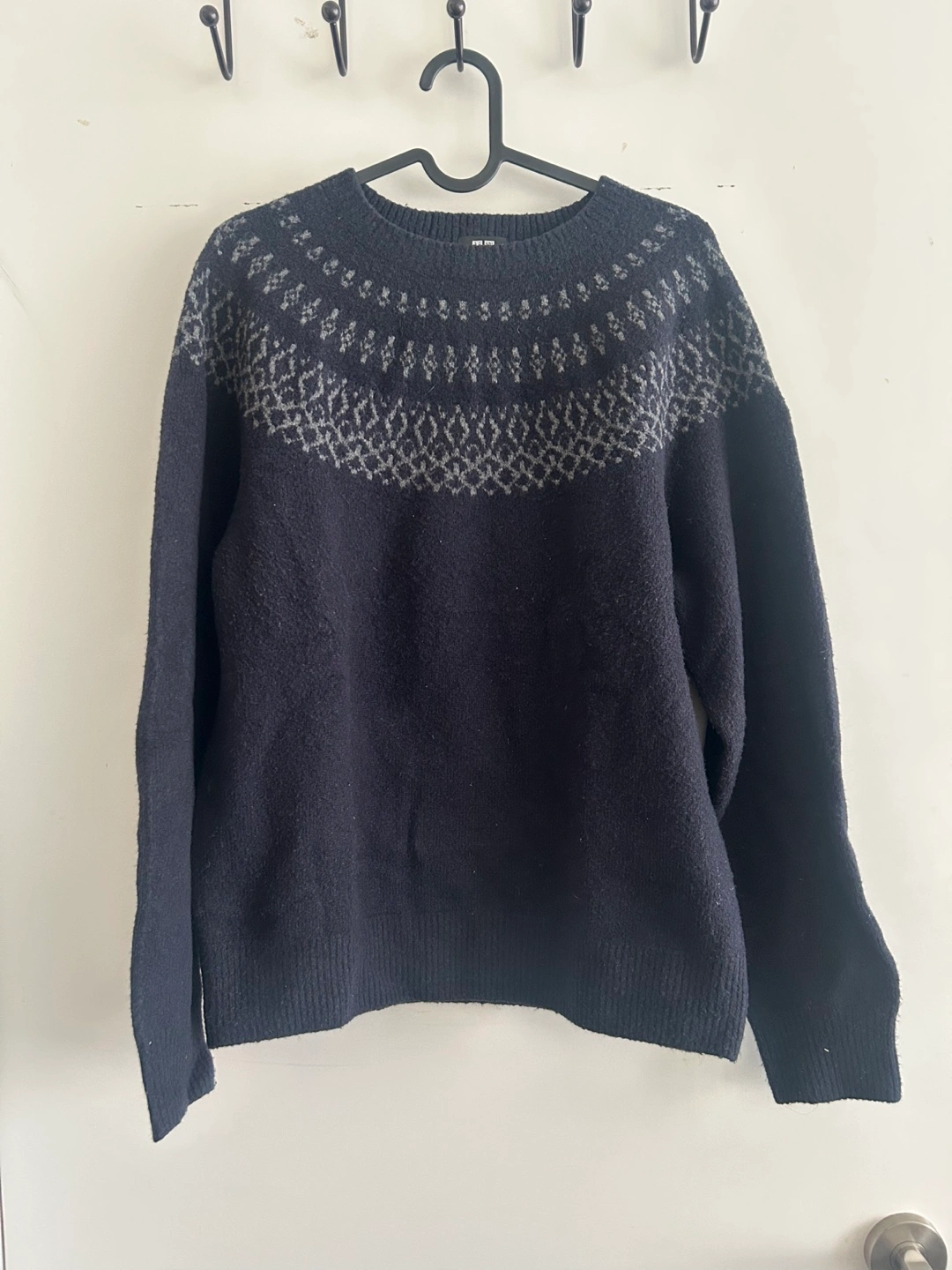 Preloved navy blue sweater. Men’s sizing. Fits like women’s medium to large.