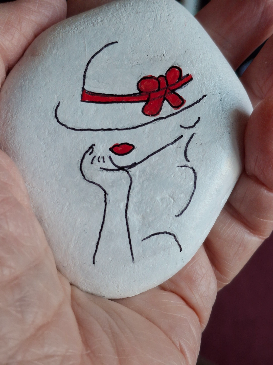 Hand Designed and Painted Rock Art: Lady in a Hat