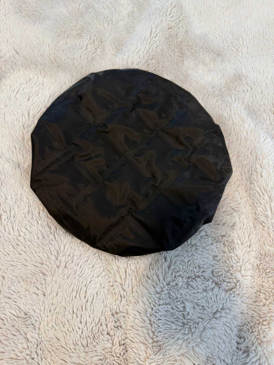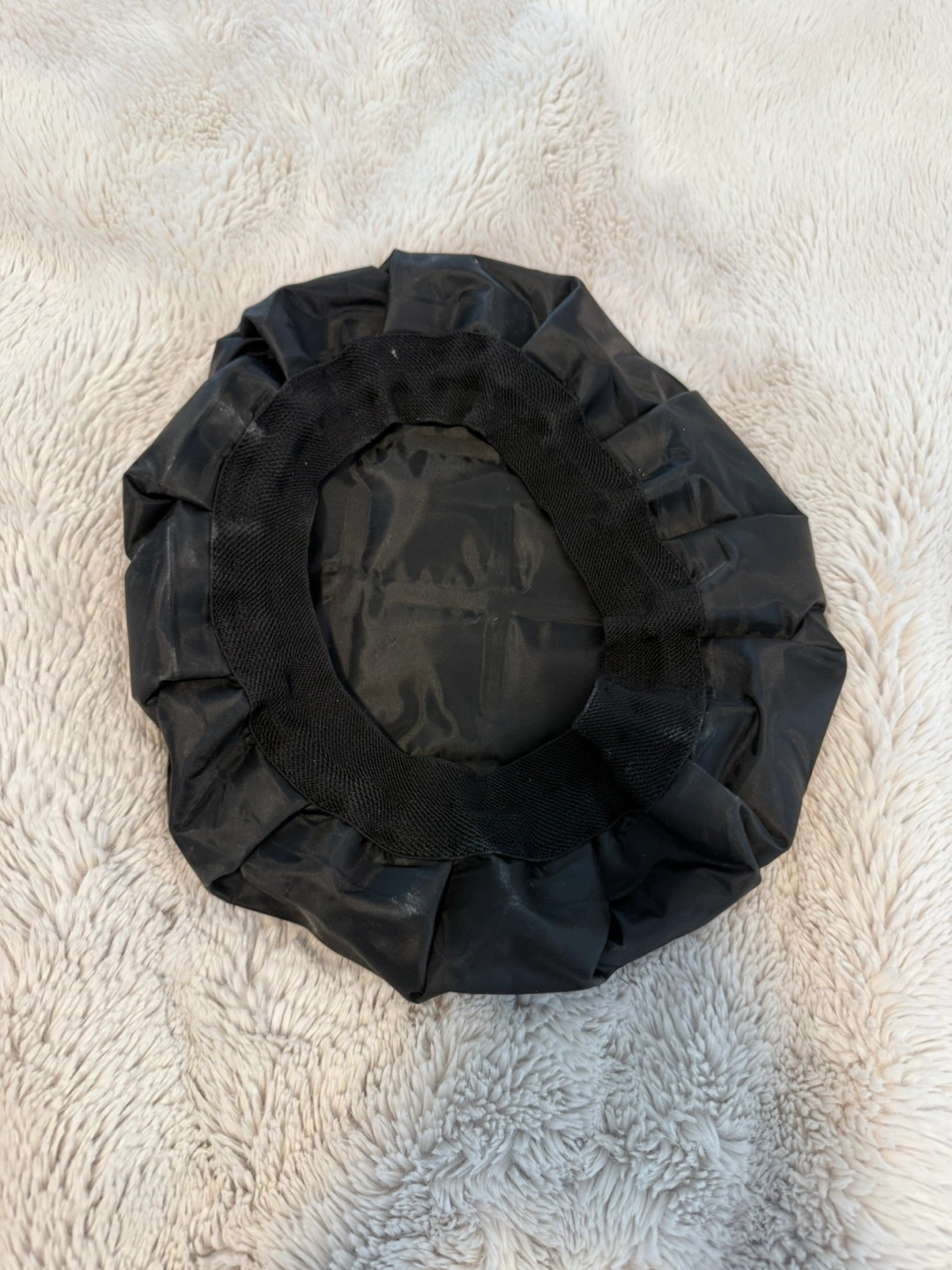weighted and great for letting hair treatment seep in before wash. Microwavable. To wash, wipe down with water but make sure not to submerge it.