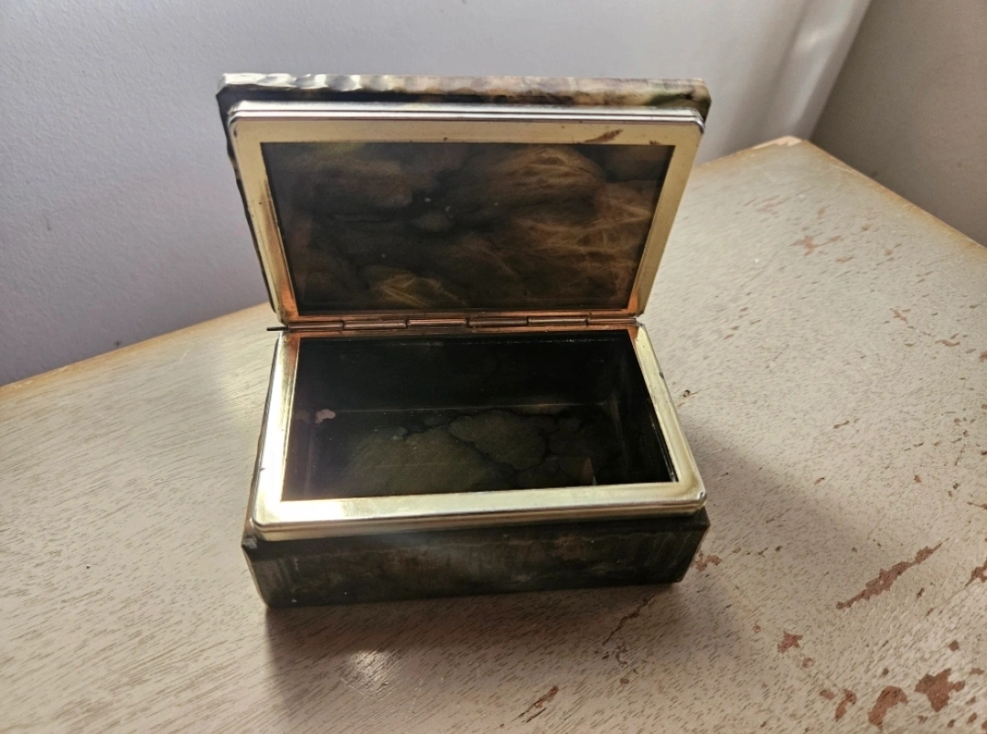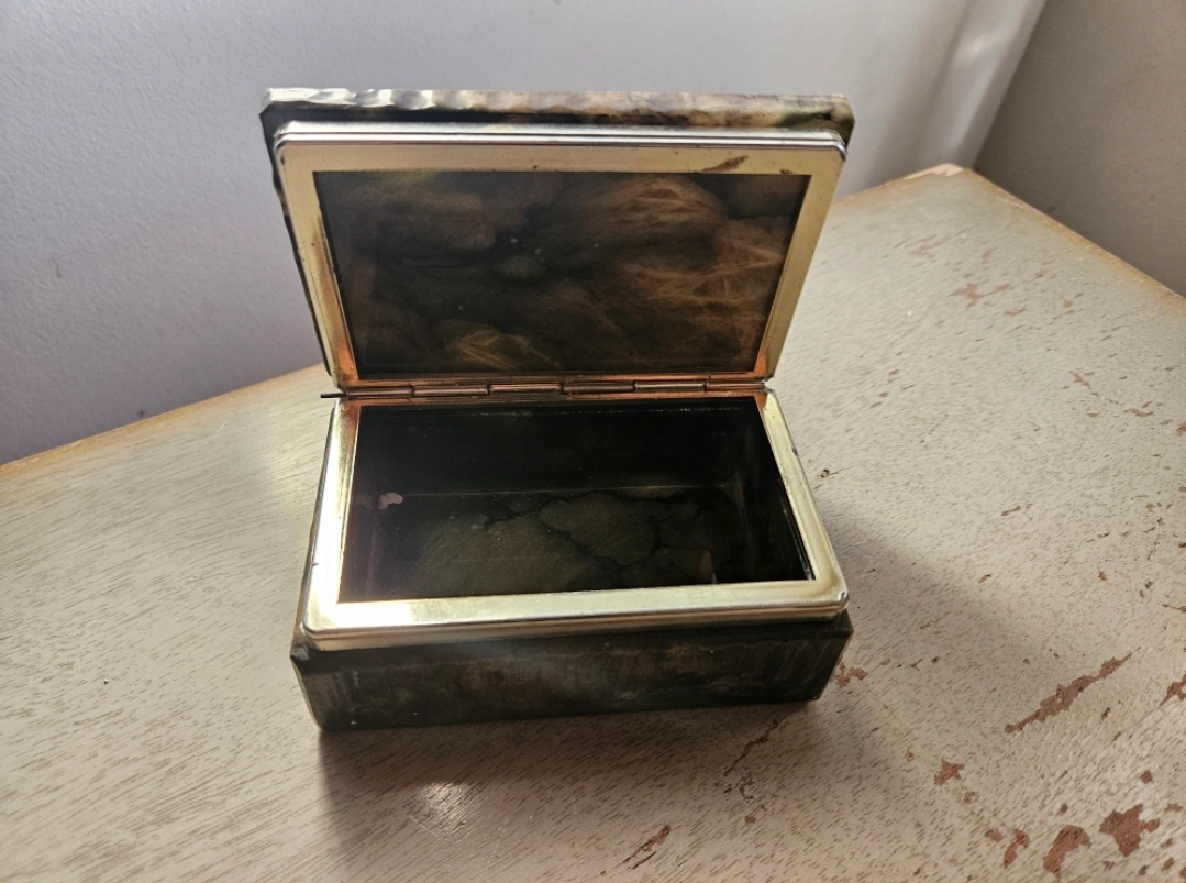 Overall in great shape for it's age, no damages. Measures 4" x 3" and 2" tall. It's got some weight to it, appears to be made of some sort of stone or marble.