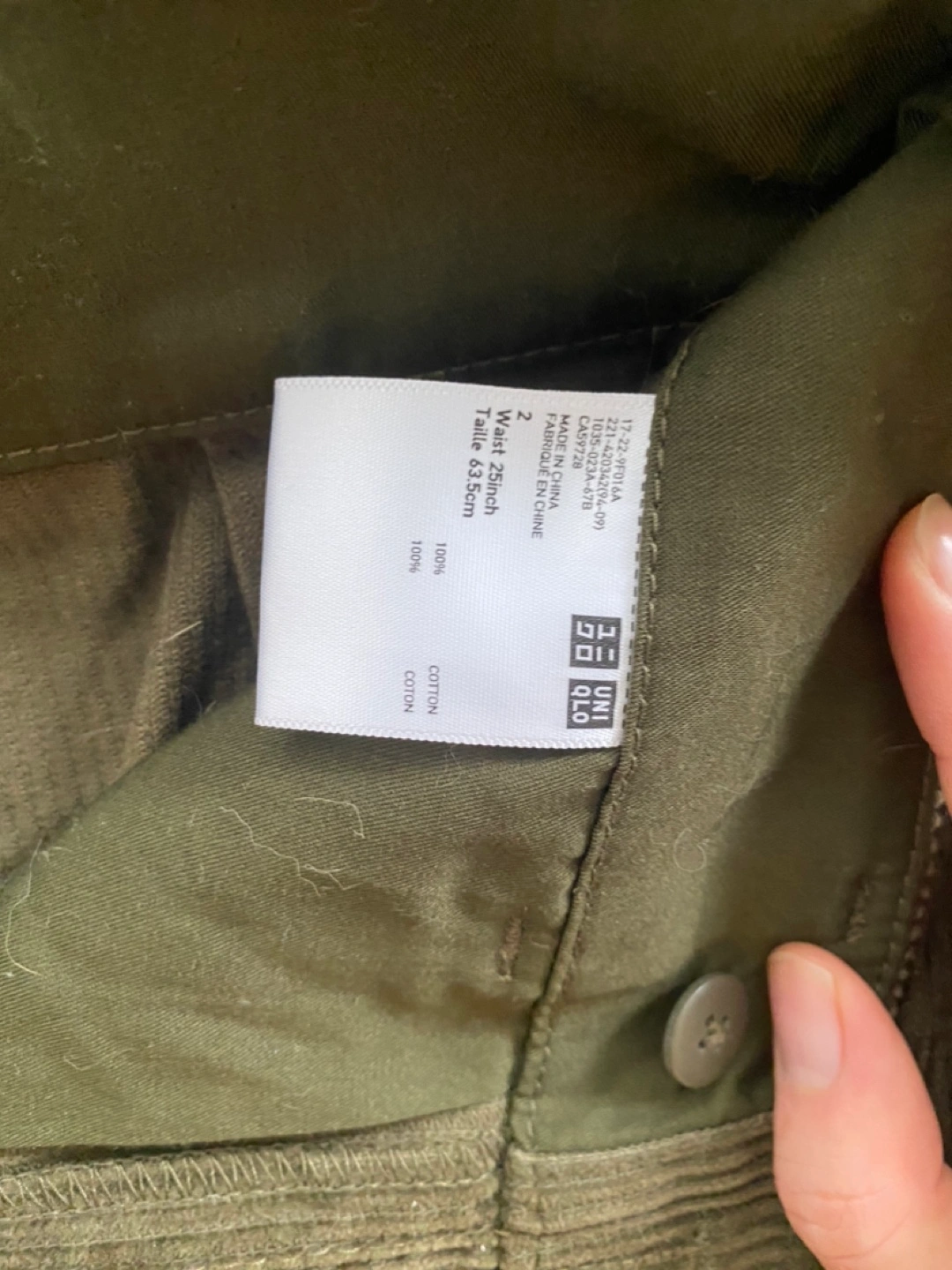 Women's UNIQLO Olive Green Corduroy Culottes Size 2