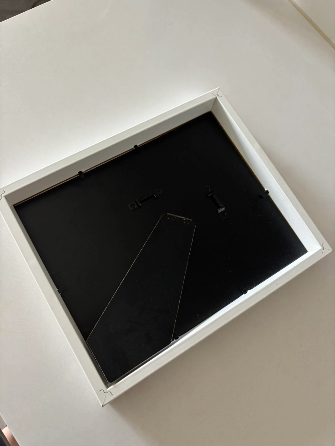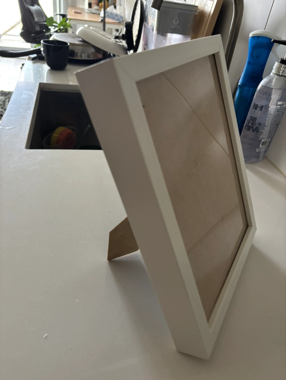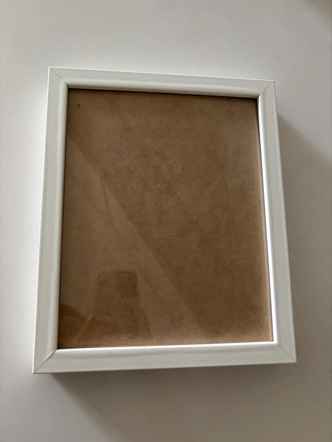 Simple white picture frame. Clean design. Can stand or hang. Perfect for photos or artwork.