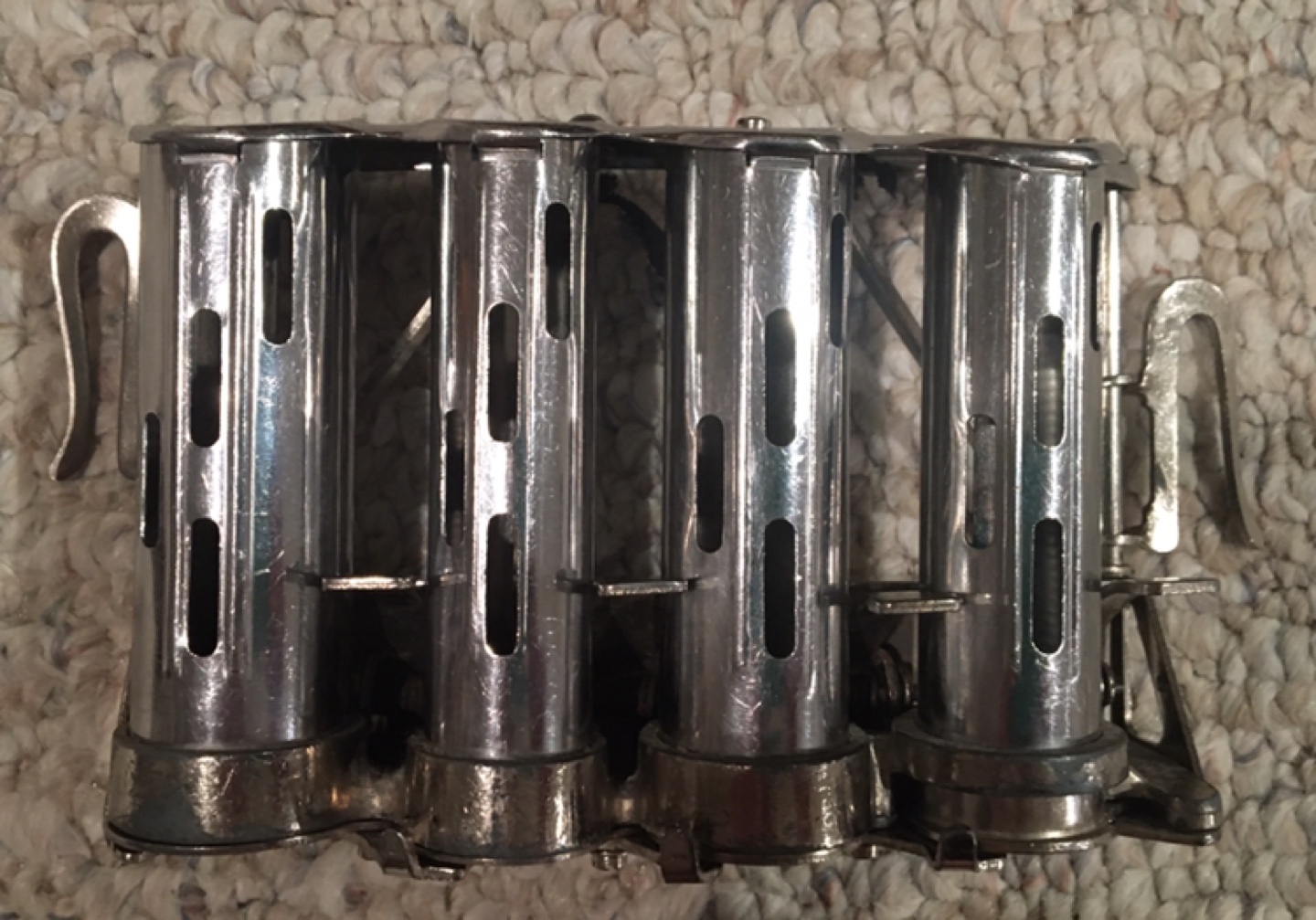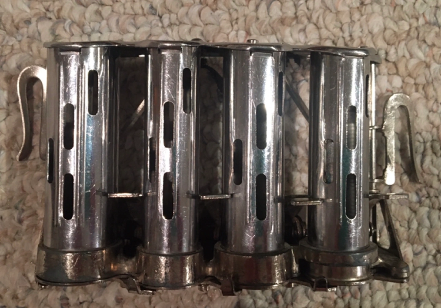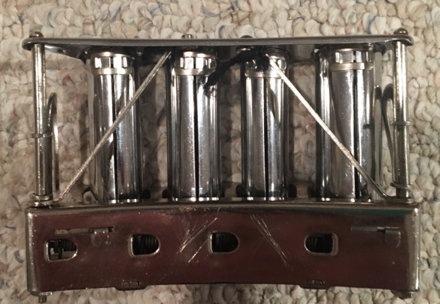 This vintage McGill coin dispenser is a must-have for any collector! It's a four-barrel design, perfect for organizing your change, and is in used condition, adding to its antique charm. A piece of history right in your hands!