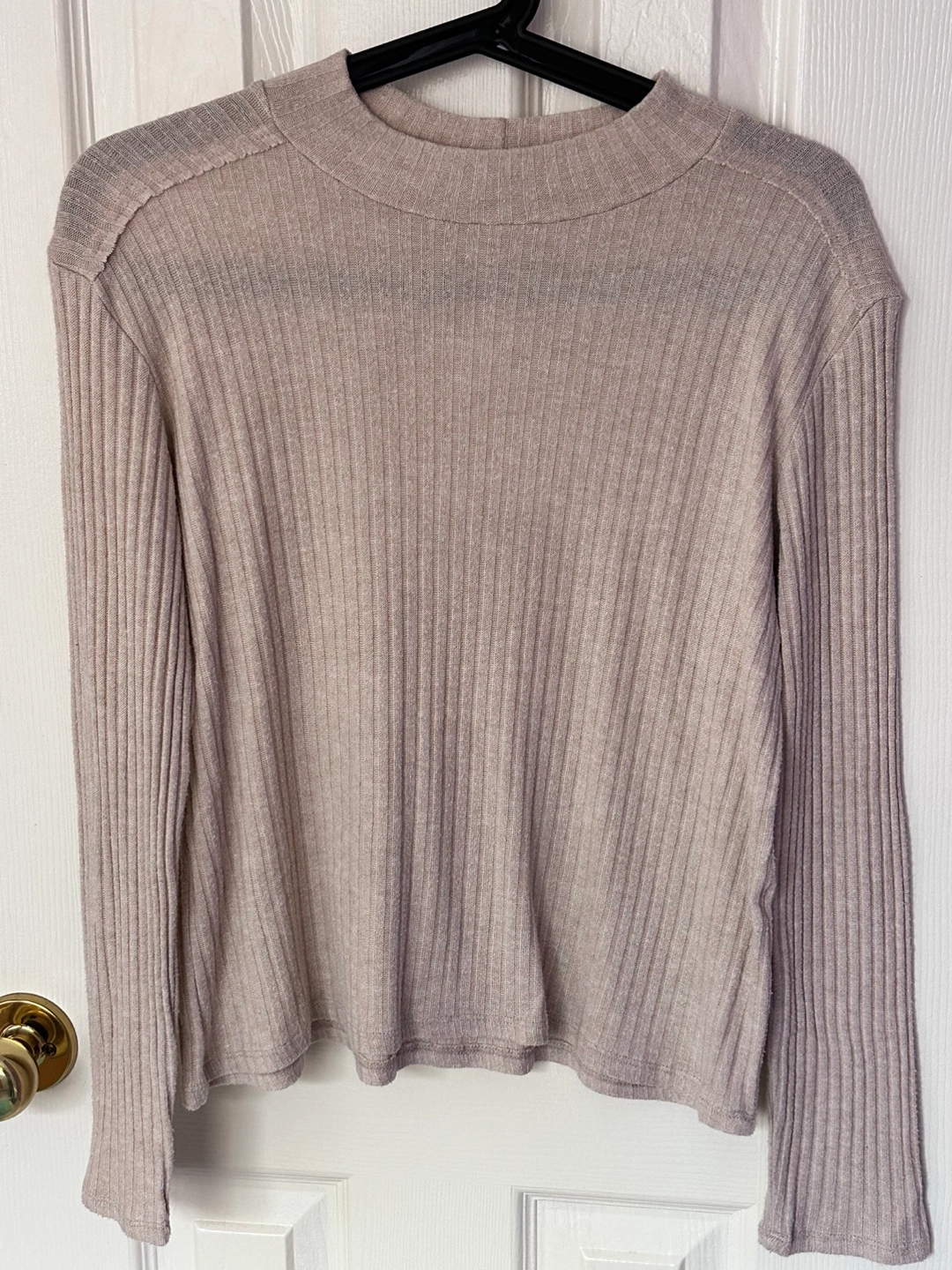Lightweight ribbed knit top. Mock neck, long sleeves. Relaxed fit. Great for layering.