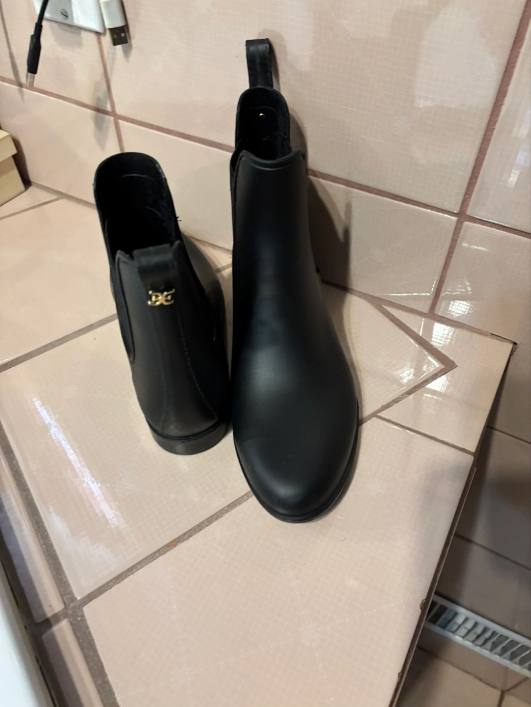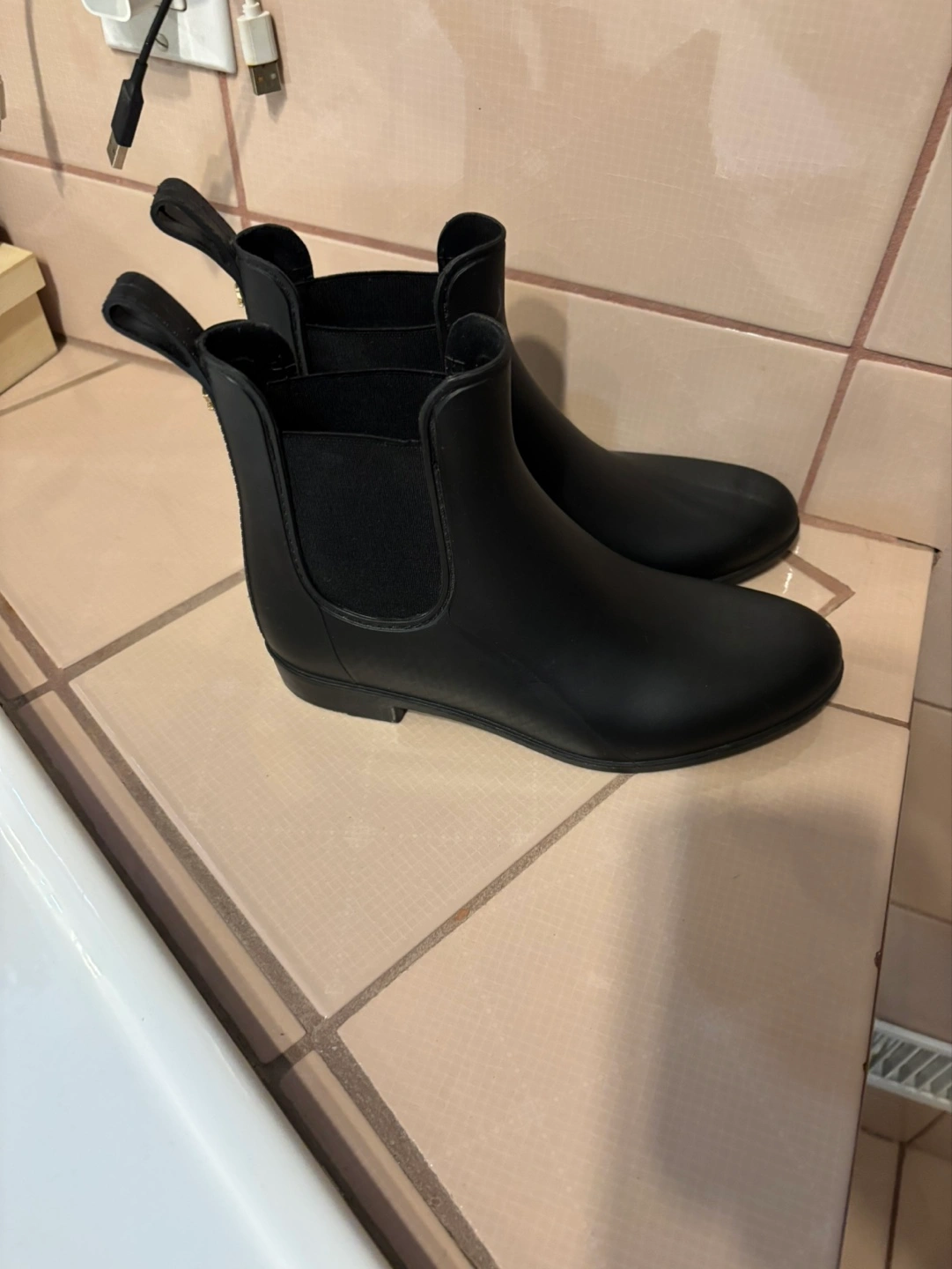 Pair of black rubber rain boots. Chelsea style. Size 7 Good condition. CASH ONLY!!