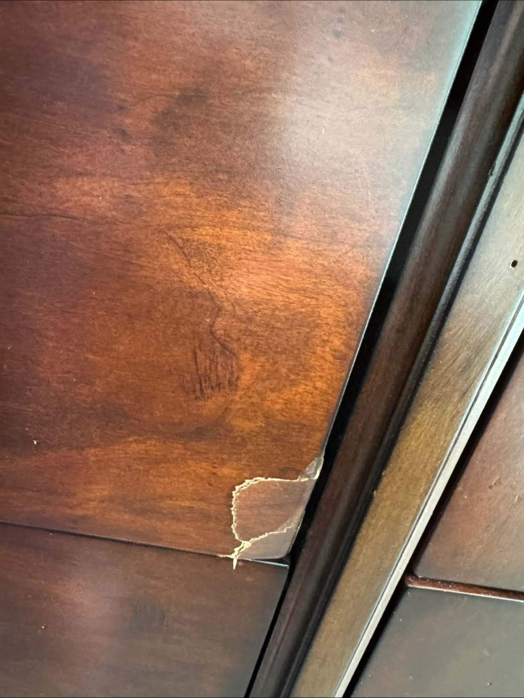 * Cosmetic Flaws: Scratches and veneer damage are present.
