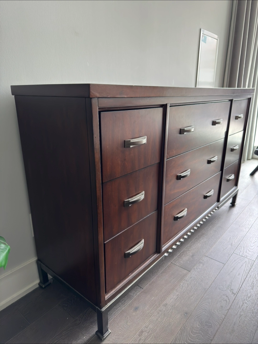 Dark Brown Wooden Dresser with Nine Drawers