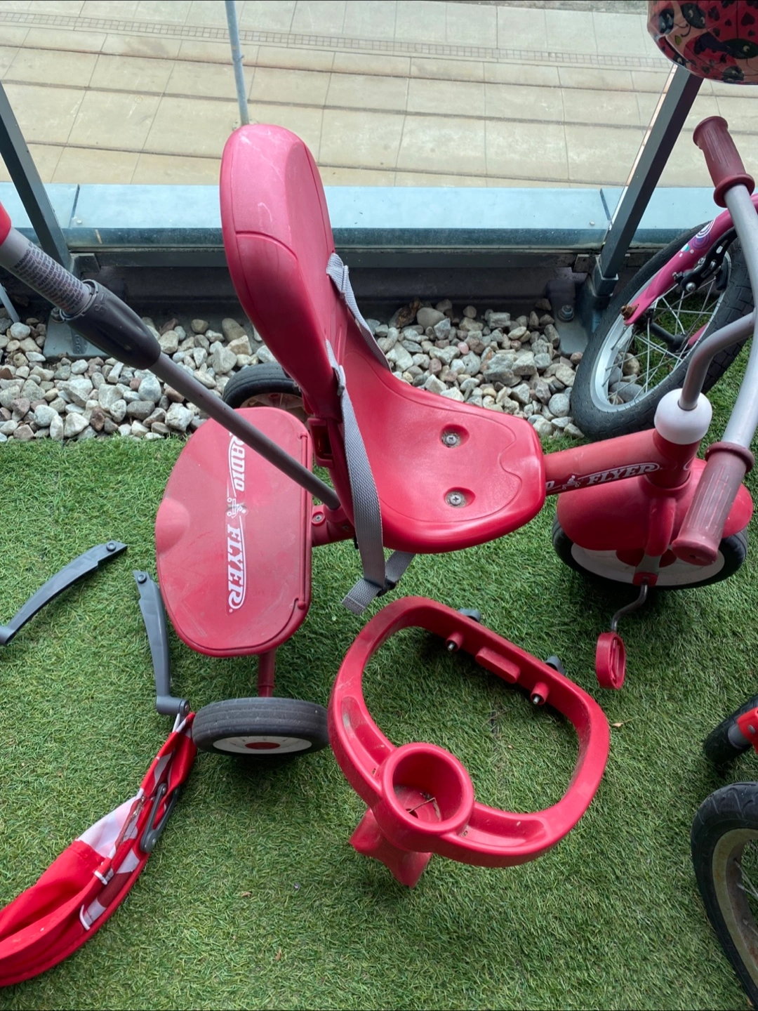 Red Radio Flyer tricycle. Parent push handle included. Some parts disassembled. Good used condition. Includes canopy and cup holder. pickup at Bathurst and fort York blvd. Thanks.