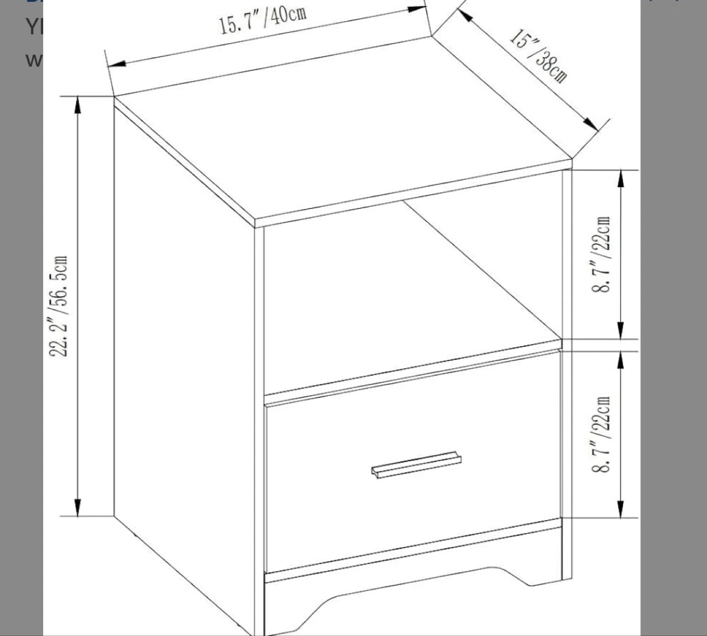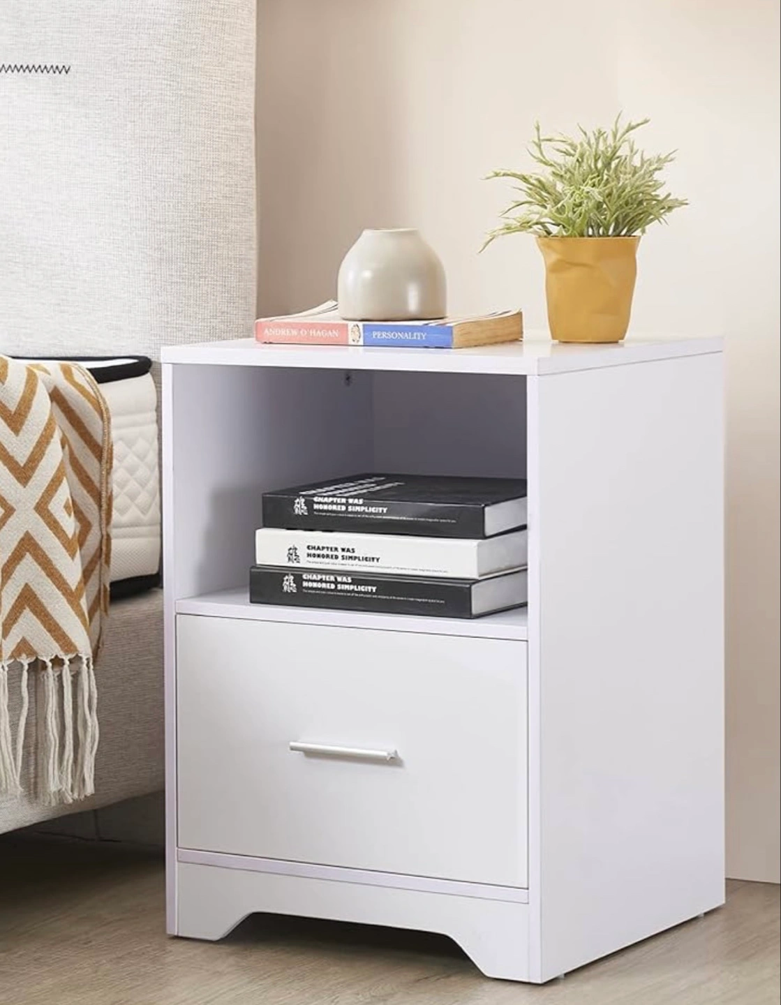 Small white nightstand. One drawer and open shelf. Perfect for small spaces. Moving out sale ! Originally bought it for $55 I can provide you with the Amazon link if needed!