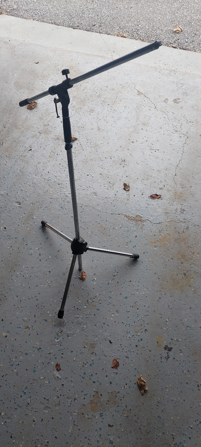 Adjustable microphone stand. Three-legged base. Black and silver. just needs the mic holder.. ugly but it works. $10 with porch pick up in Thornhill near Yonge and Clark