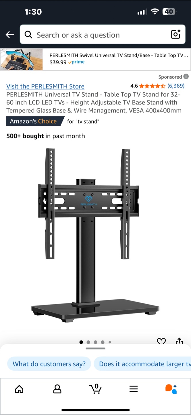 PERLESMITH Universal TV Stand - amazon