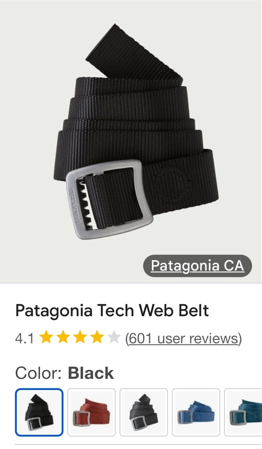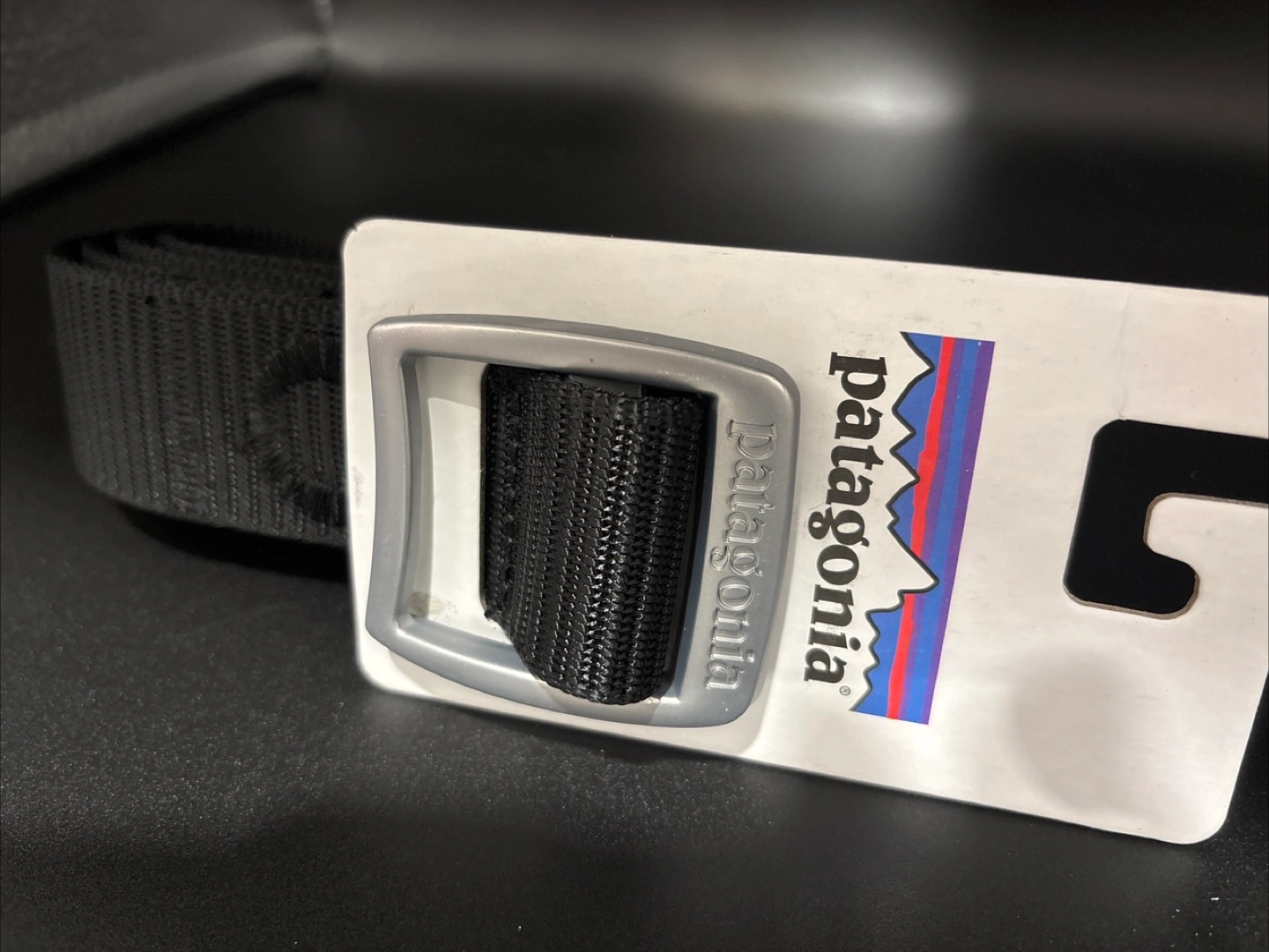 Patagonia Tech Web Belt. Black colour. Durable nylon webbing. Silver buckle. Lightly used.