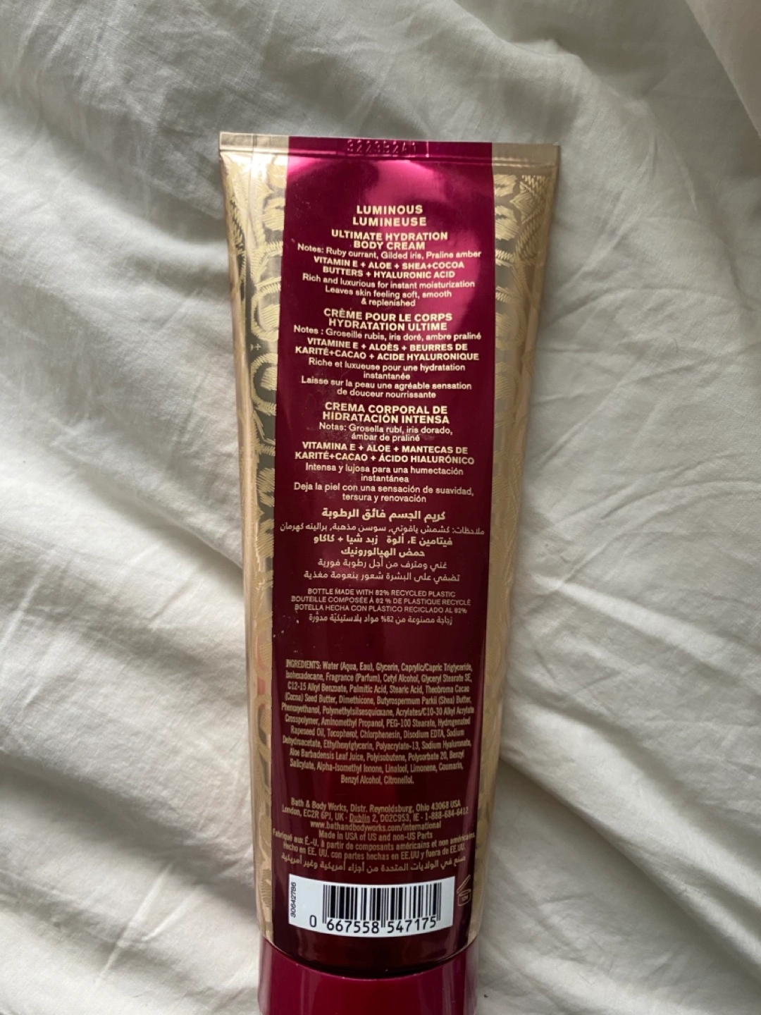 Full Bath & Body Works body cream (226g). Rich and luxurious formula hydrates skin for up to 24 hours. Features notes of ruby plum, aloe and shea-cococa butter.