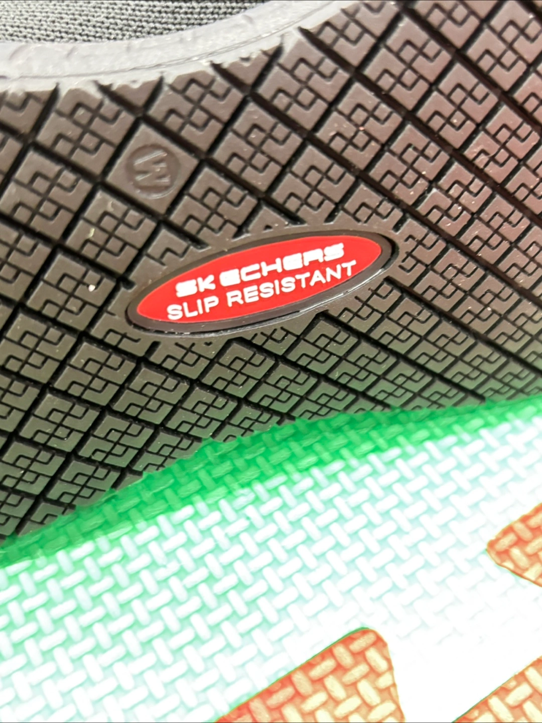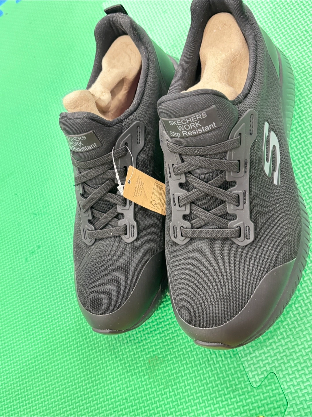 Black slip-resistant work shoes. Skechers brand. Size 7 wide fit .Features 3M Scotchgard protector. New with tags.