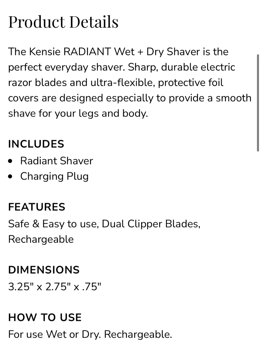 New in box! Kensie RADIANT Wet + Dry Rechargeable Shaver!