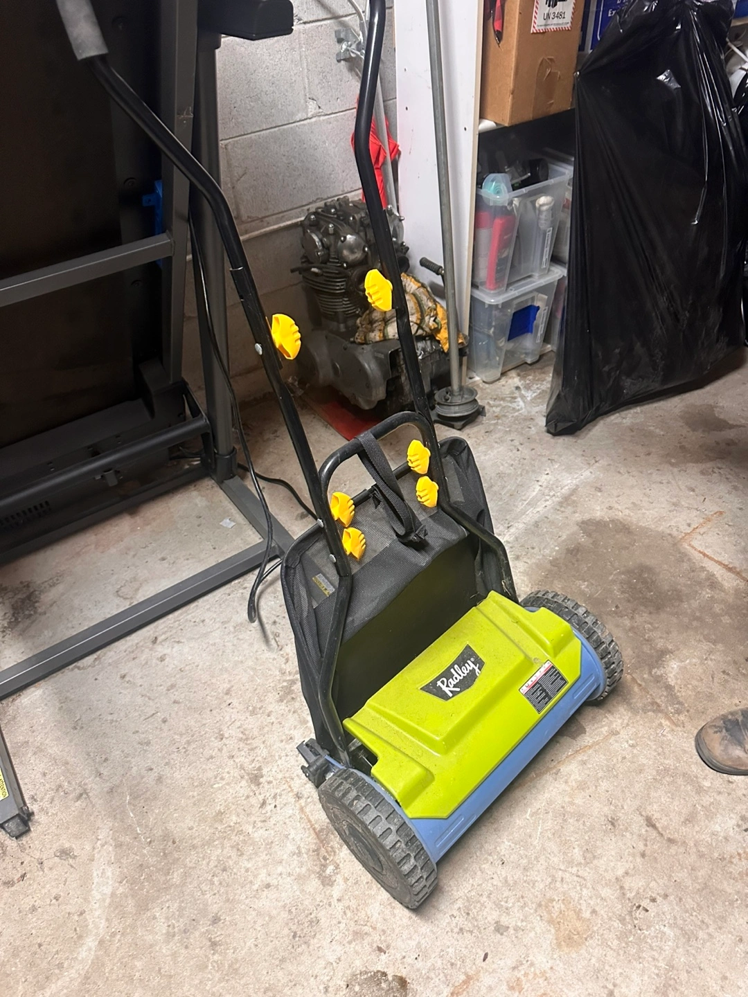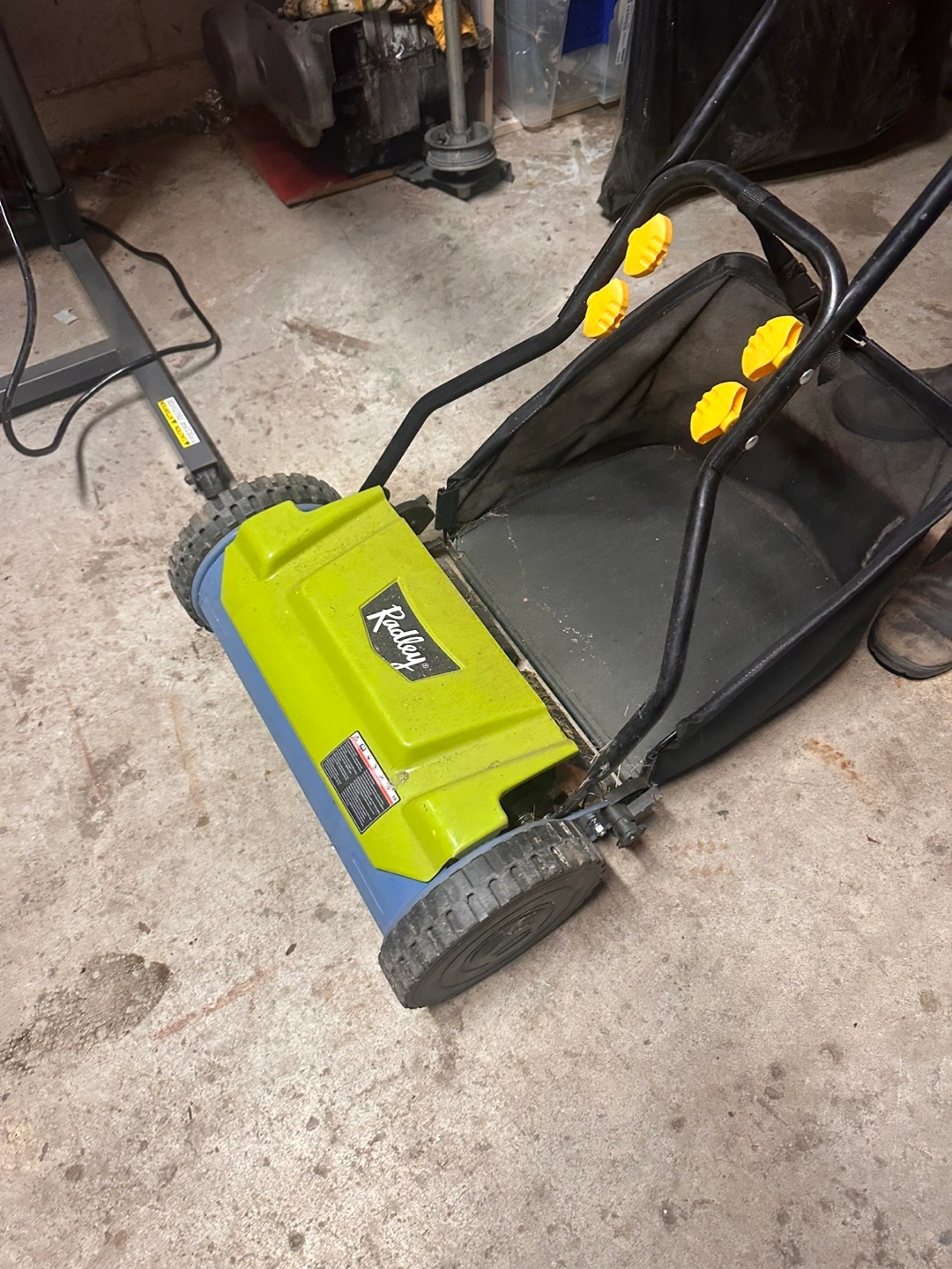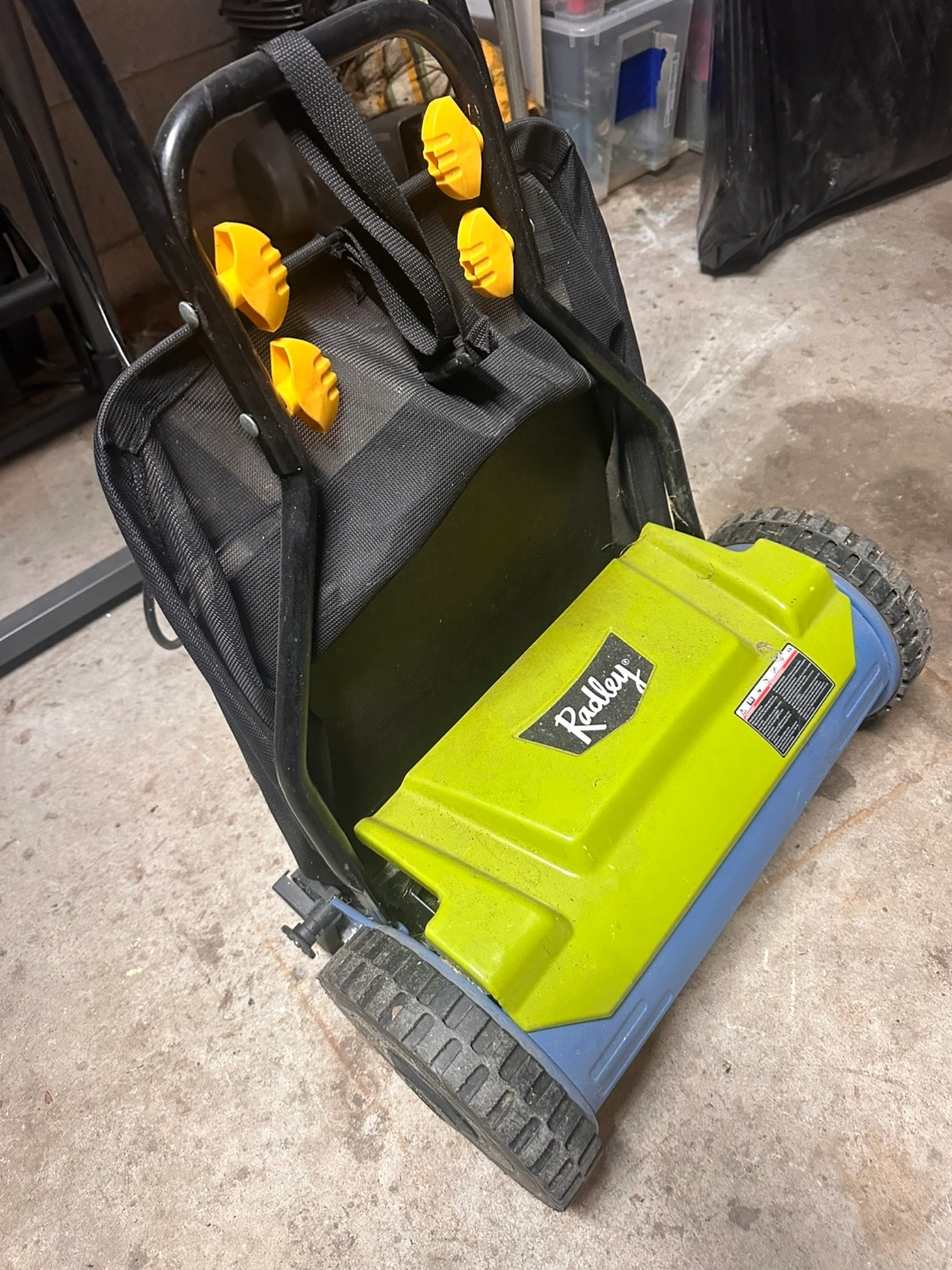 16Manual lawn mower. Good condition. Includes collection bag. Great for small lawns.