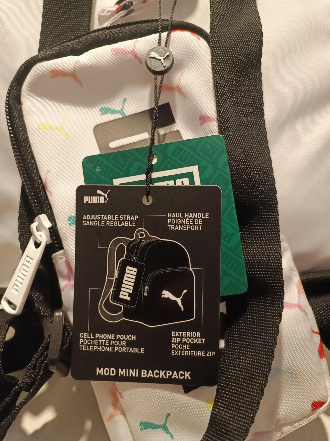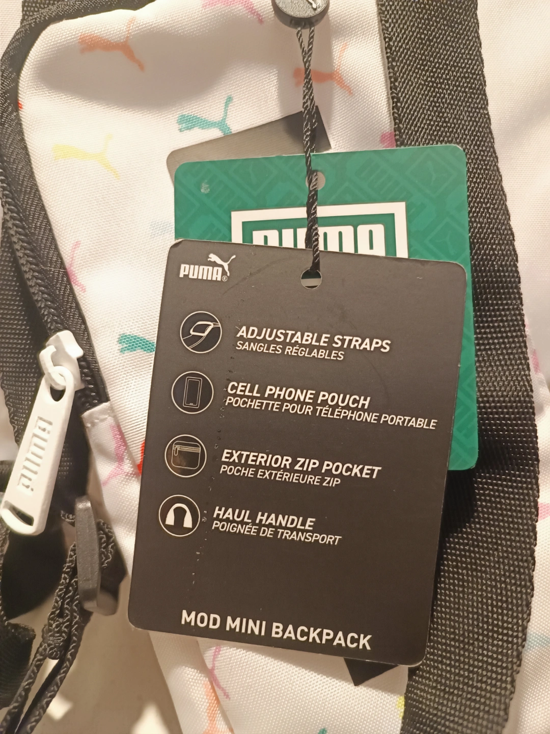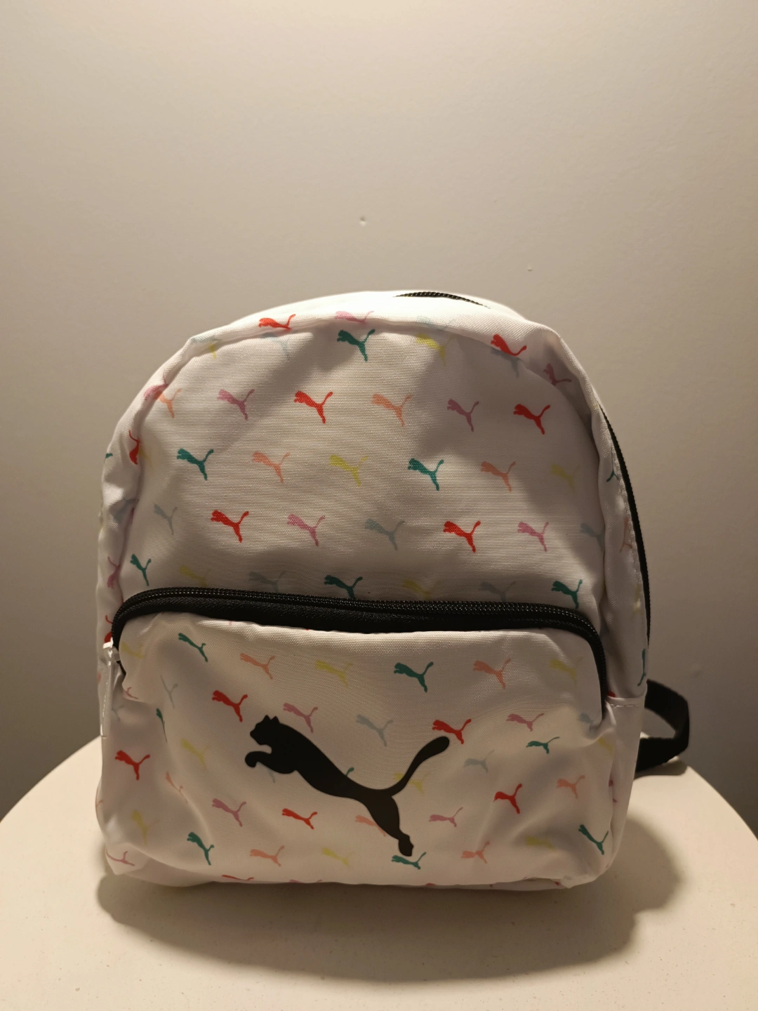 New never used Cute mini backpack. Features adjustable straps, haul handle, cell phone pouch, and exterior zip pocket. Rainbow Puma logo pattern.