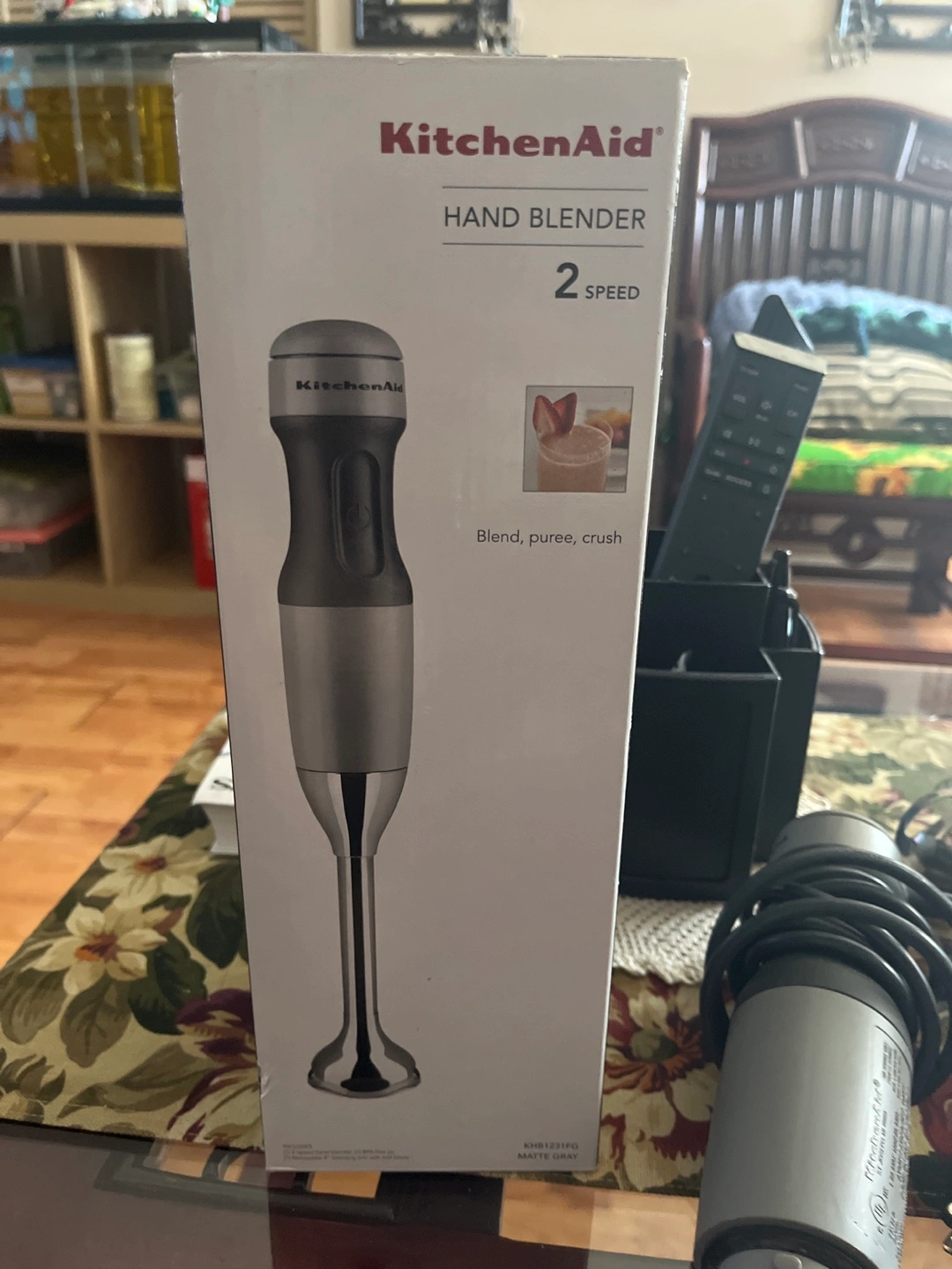 New KitchenAid hand blender. Two speeds. Blend, puree, crush. Includes box and in picture attachments.