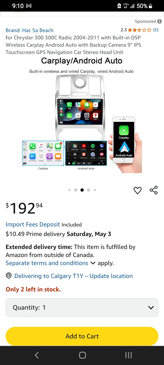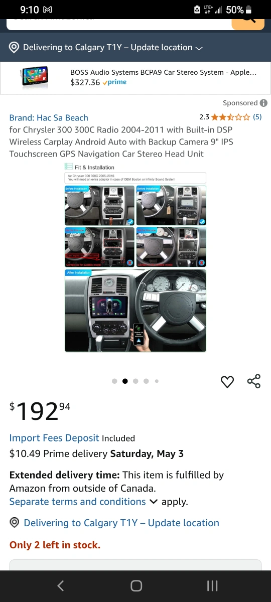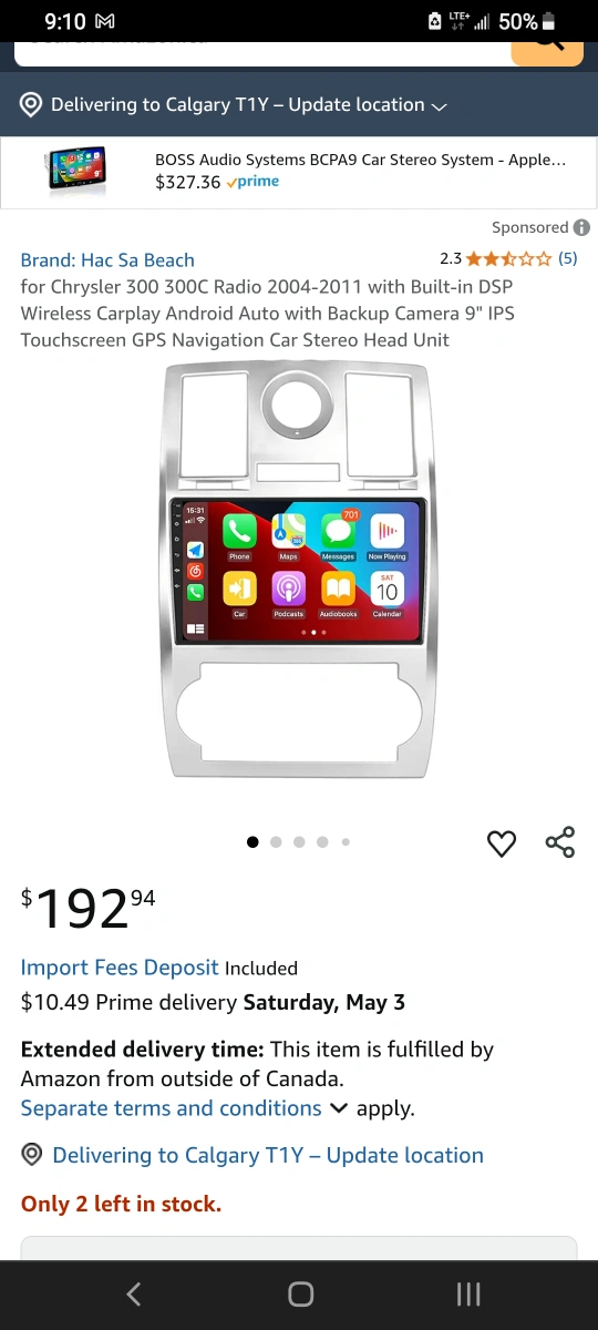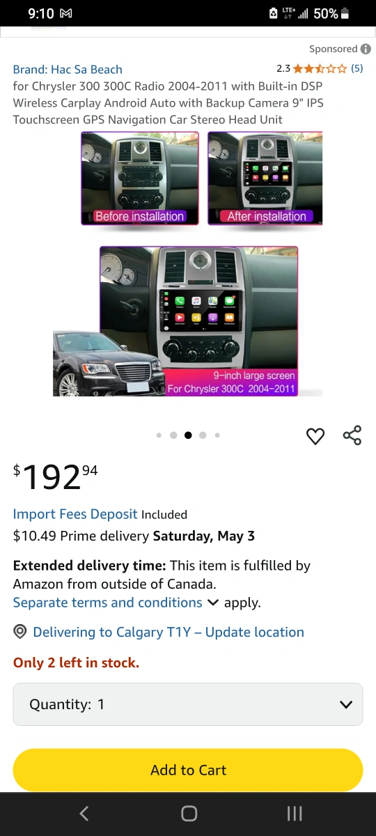 9-inch touchscreen GPS navigation car stereo head unit. Includes backup camera. Wireless Android Auto. Built-in DSP. New, in box. For Chrysler 300C 2004-2011.