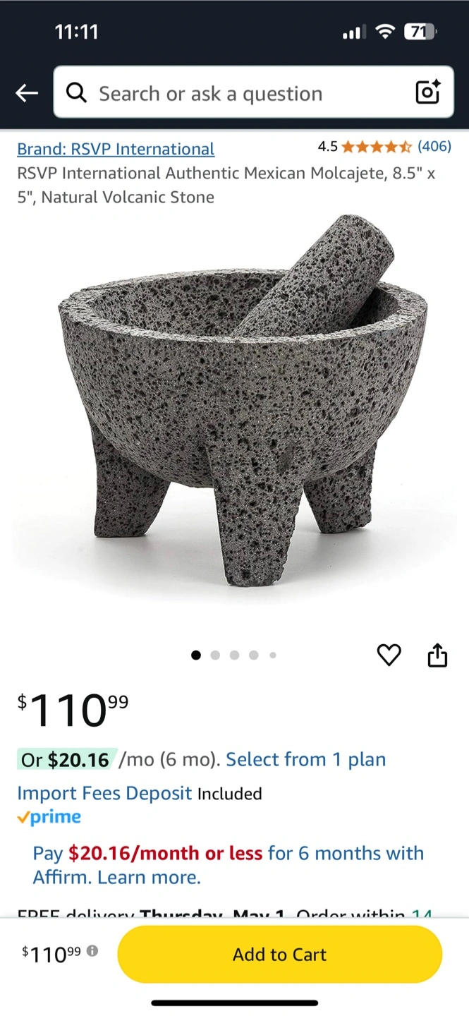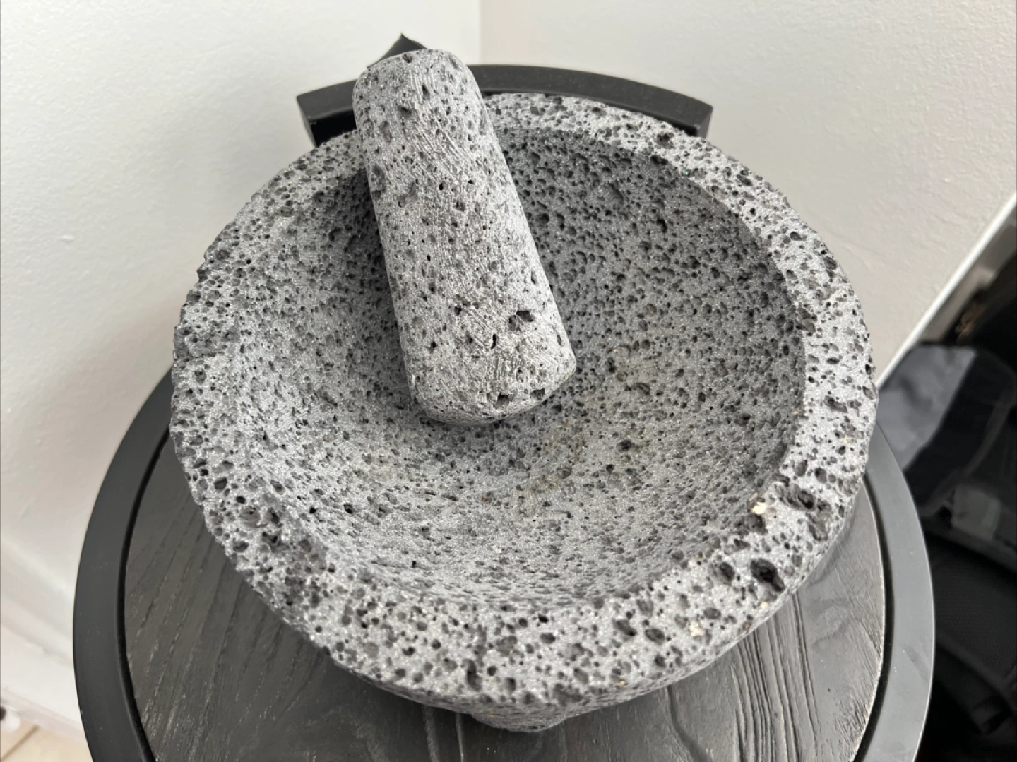 91Authentic Mexican Molcajete 8.5" x 5", Natural Volcanic Stone New, and unused. I don’t have the instruction booklet anymore. Purchased as a gift for my wife, but it’s time to accept we’re not making fancy guacamole at home. Pick up in East York, near Mortimer and Greenwood.