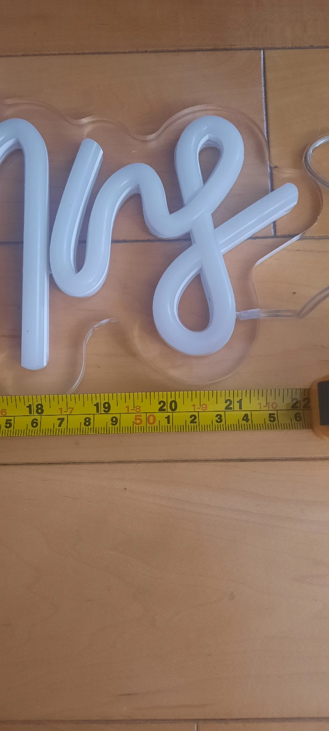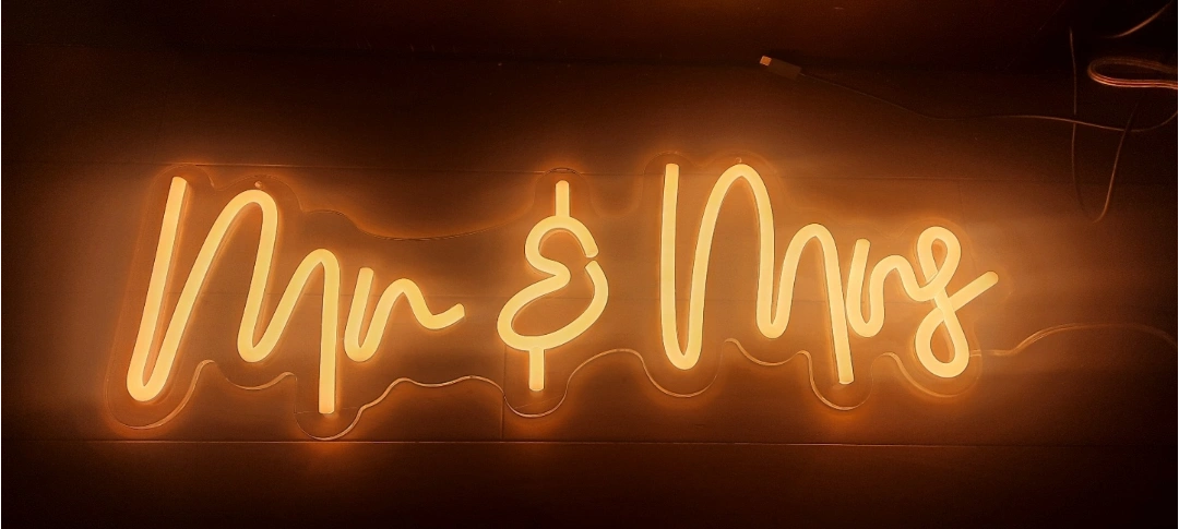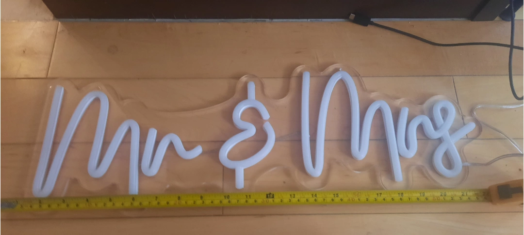 White LED neon sign. Says Mr & Mrs. Perfect for weddings or home decor. USB powered. Used at my wedding 2 years ago.