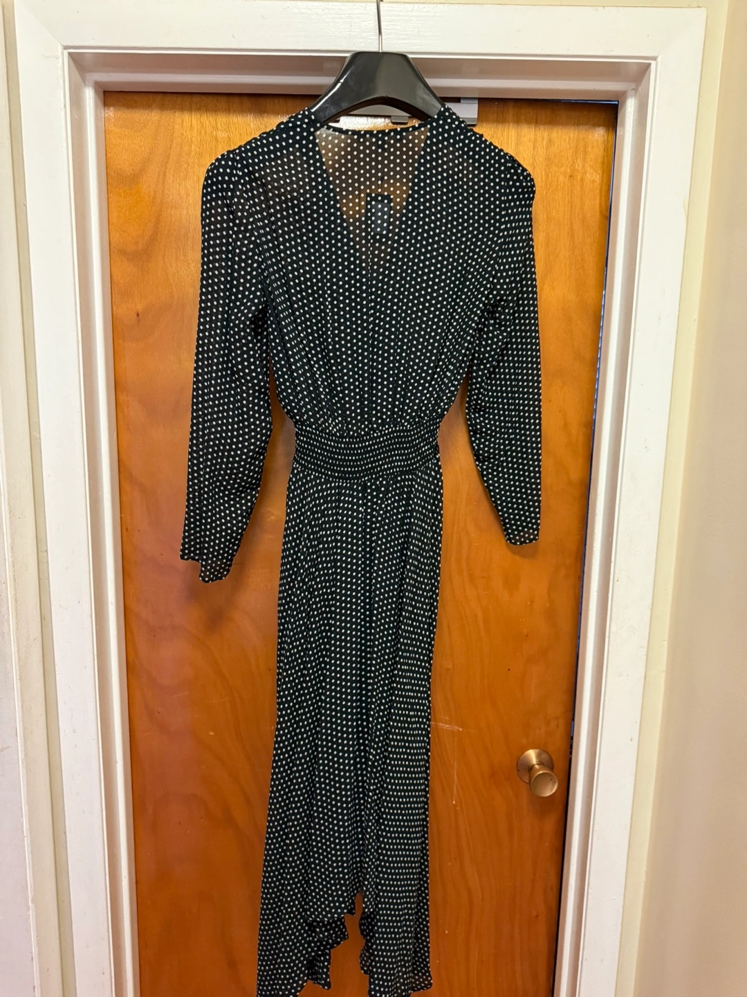 MAJE - BLACK LONG SLEEVES V-NECK POLKA DOT DRESS