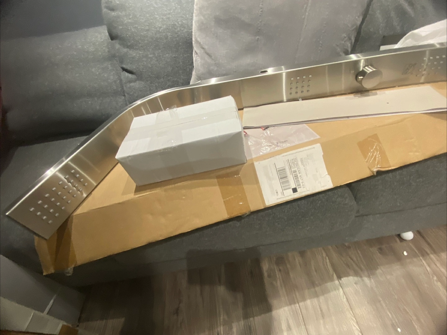 Stainless steel bathtub shower panel. Multiple spray settings. New in box had to open the display it