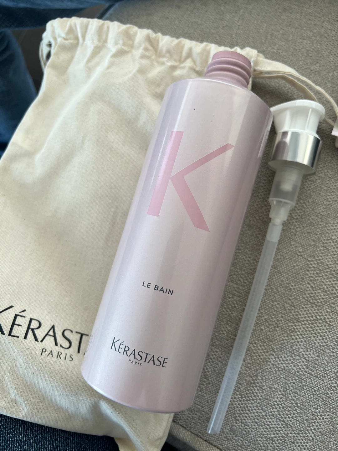 Kérastase Paris Le Bain shampoo. 500ml bottle. Comes with a reusable cotton pouch. Pump included.