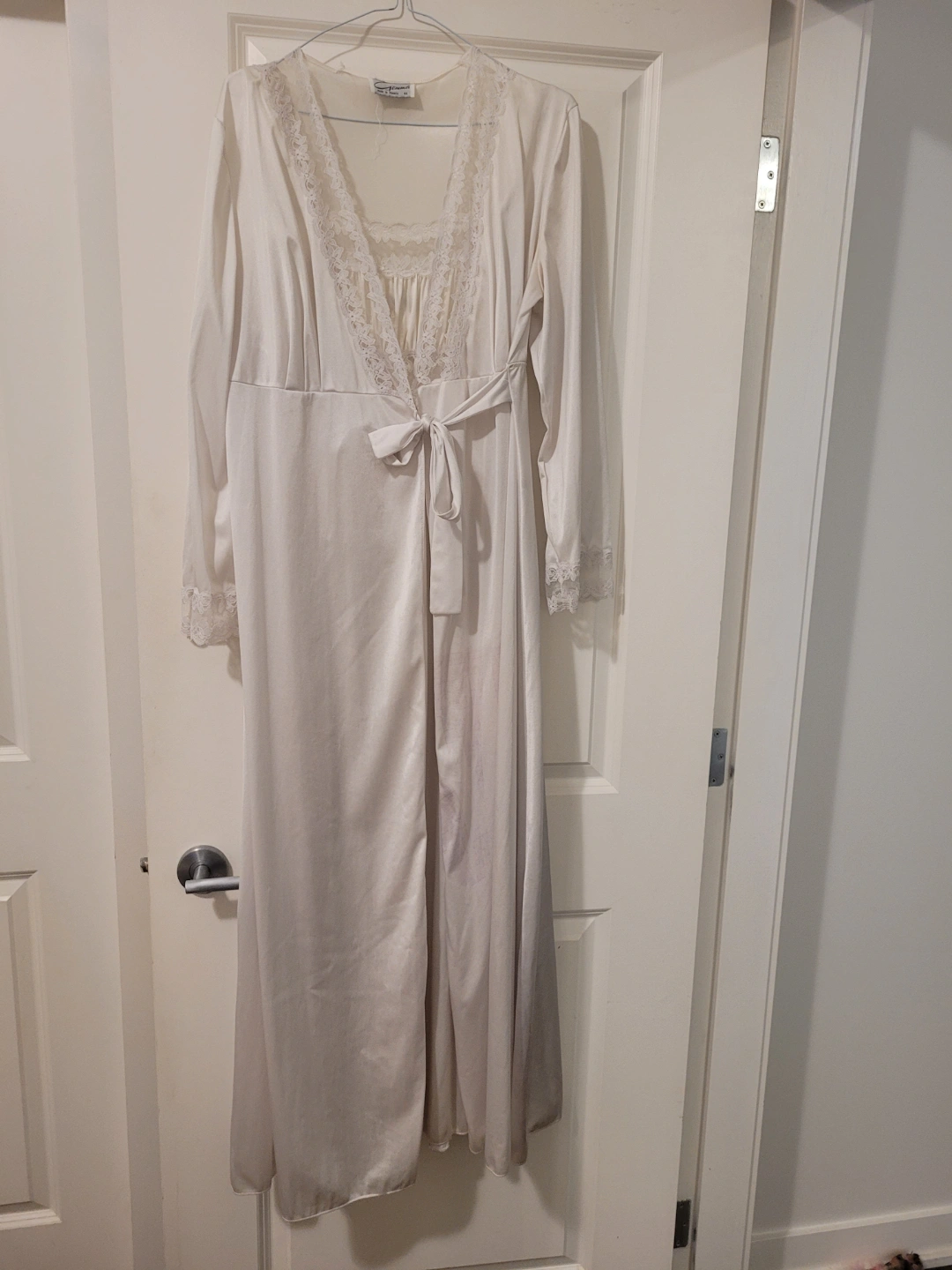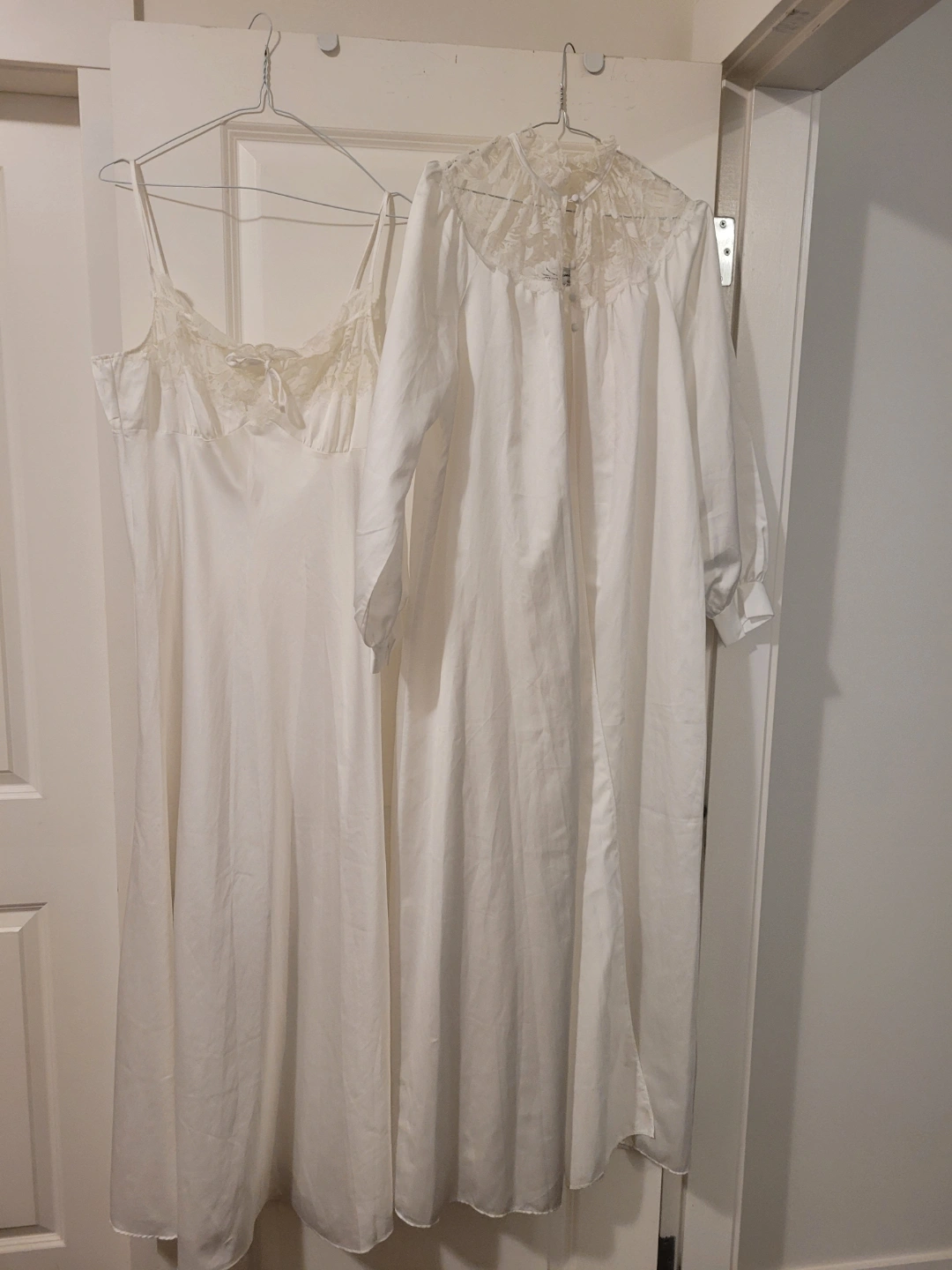 Beautiful vintage Glenma lingerie set.two of them Made in France. Includes a slip and a robe. Elegant lace detailing. Size 42 & 44 fits M/L each for 10$ ALL three for 22$ good condition just the last two has some stain but it's gonna be removable with clorox I did mine and it worked out No try on CASH only NO etransfer PU surrey central please check my other listings