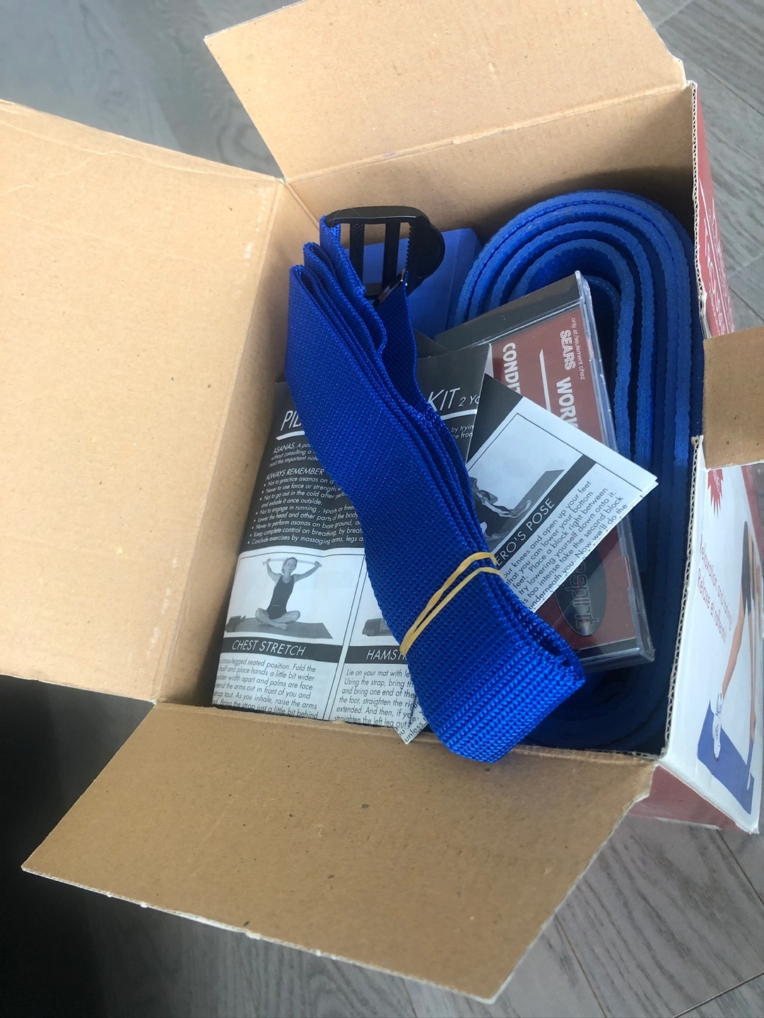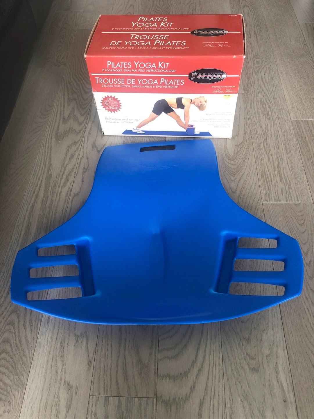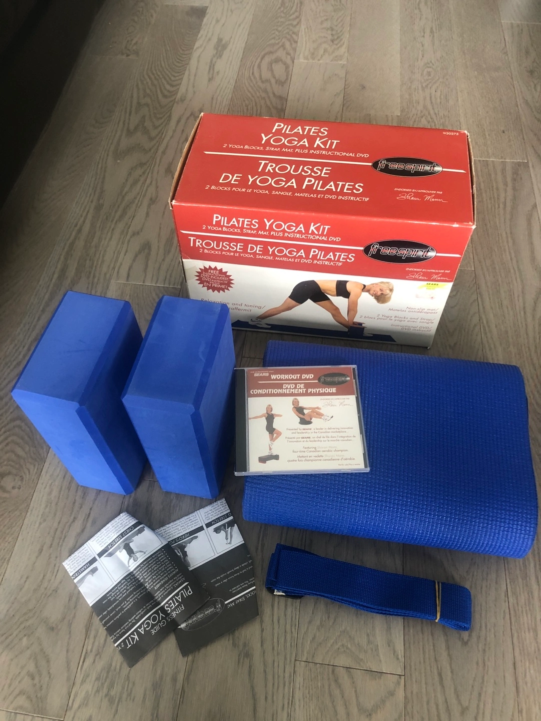 Complete Pilates Yoga kit. Includes mat, two blocks, strap, and instructional DVD AND Sit Up Abdomen exerciser Great for relaxation and toning exercises. Moving sale.