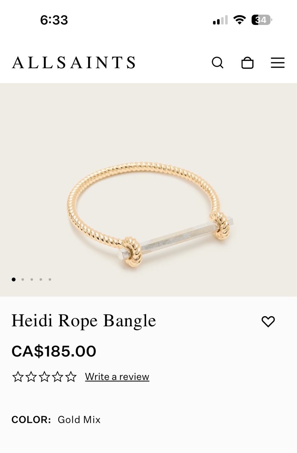 1 / 41 / 4Buy & SellAllSaints BagleAllSaints Bagle$30Gold-tone bangle, Brand New never worn. Other style shown to demonstrate what the retail price of AllSaints bangles go for.ConditionNewBrandAllsaintsWHERE TO MEETBay & GerrardView MapSELLERverifiedViolettaBay Street Corridor45032 reviews3 chats·3 favorites·167 viewsSEND CHAT TO SELLERHi Violetta! I’m interested in your listing.Hi Violetta! I’m interested in your listing.Get the Karrot app to chatSign In to chat