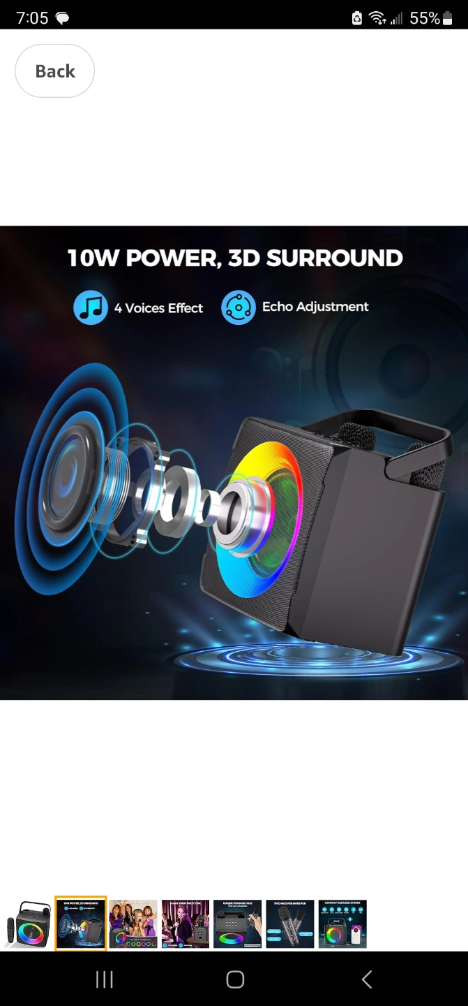 đ”ăDynamic LED LightsăThis karaoke speaker has 3 types of light modes. It can change with the rhythm of music, poviding the most romantic and karaoke party environment for you. You can also long press the LED button to turn off light.