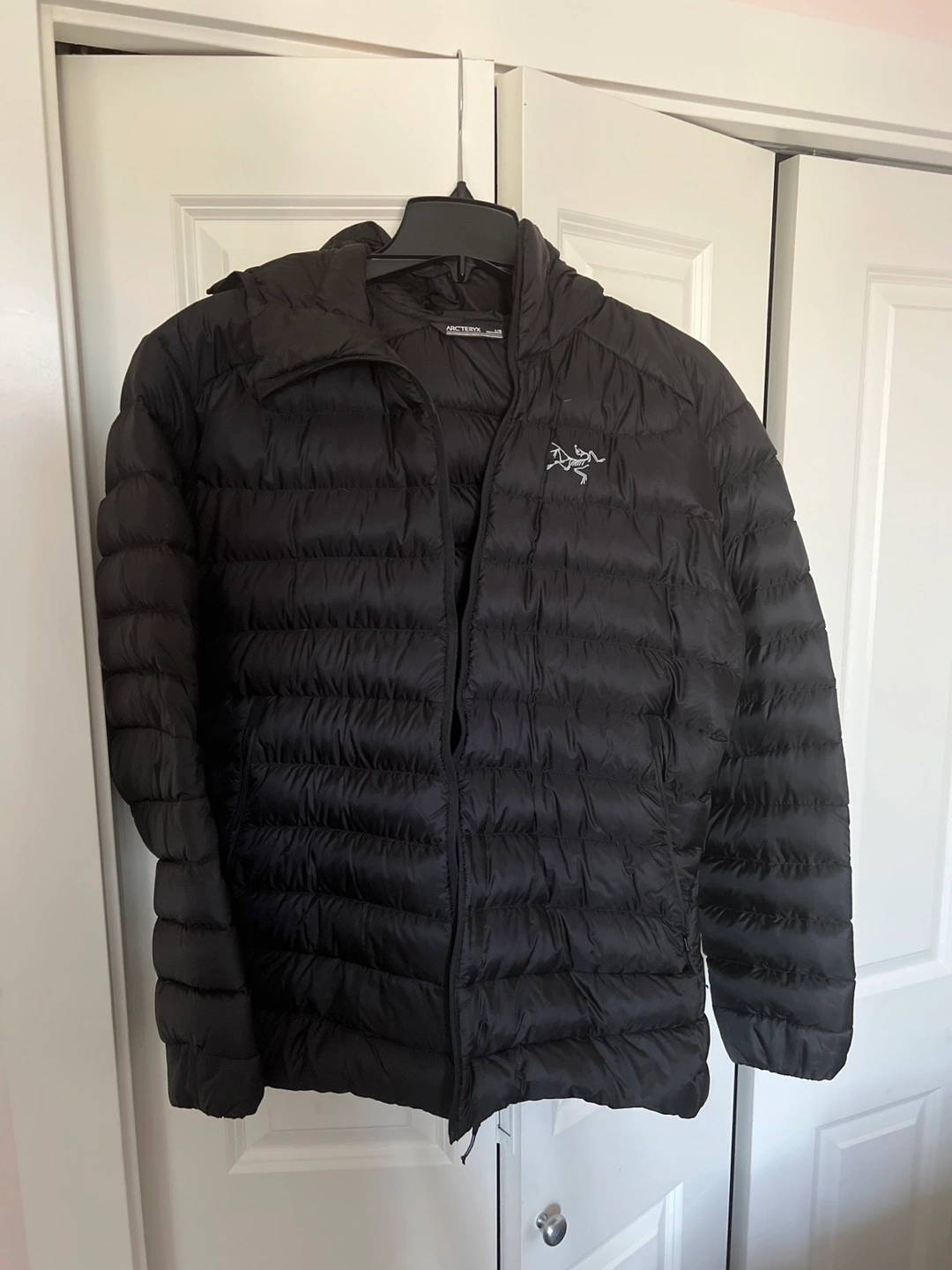 Black Arc'teryx Cerium LT Hoody. Men's size large. Down-filled hooded jacket. Good condition.