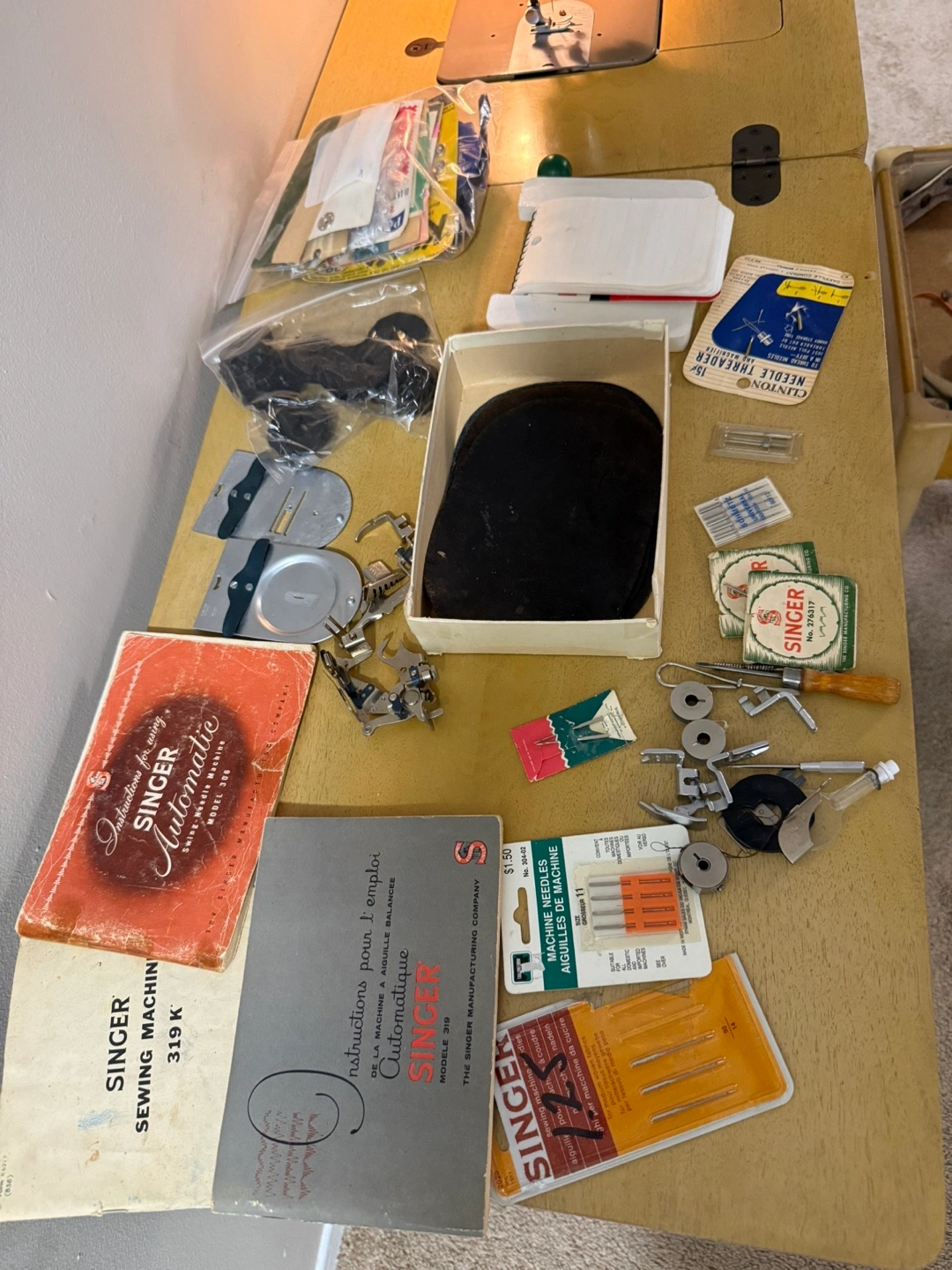 Vintage Singer 319K Sewing Machine with Cabinet and Accessories