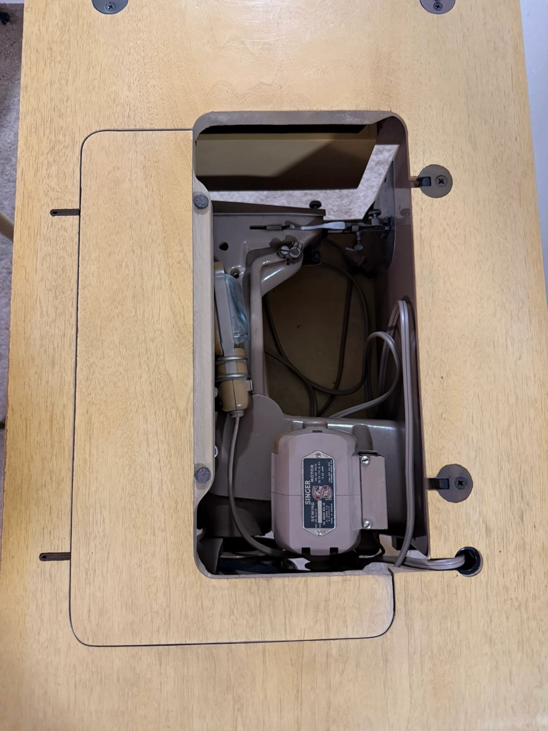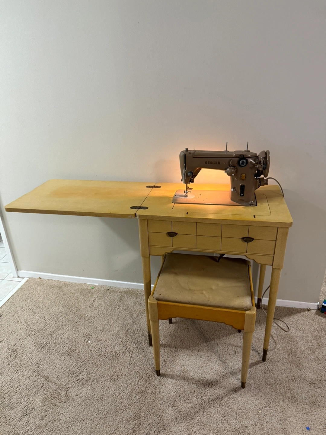 Vintage Singer 306k sewing machine. Includes cabinet, stool, and a variety of accessories. Built-in light. Excellent condition.