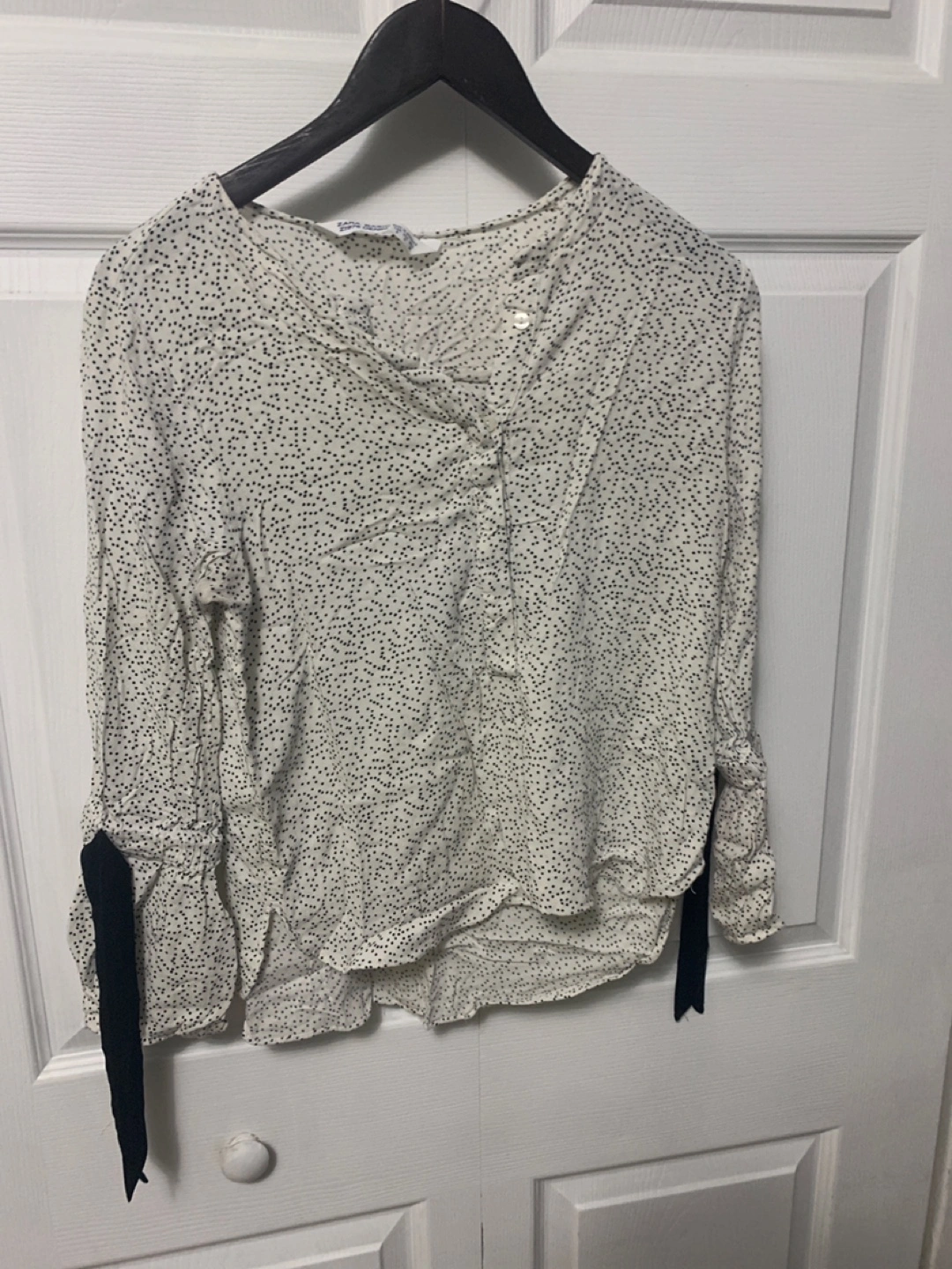 282Adorable Zara blouse. Polka dot print. Long sleeves with tie detail. Size small.