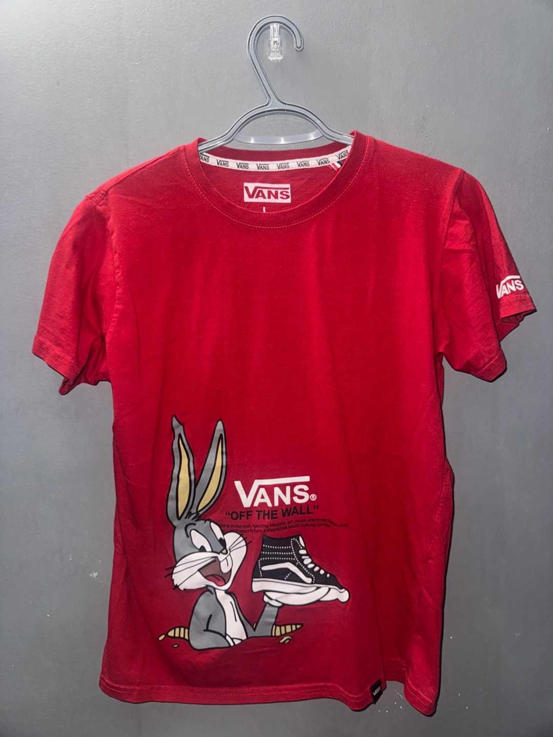 99Red Vans t-shirt featuring Bugs Bunny graphic. Features Vans branding throughout.