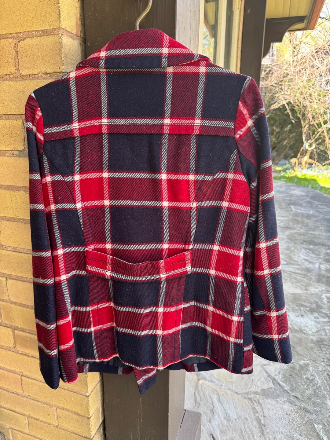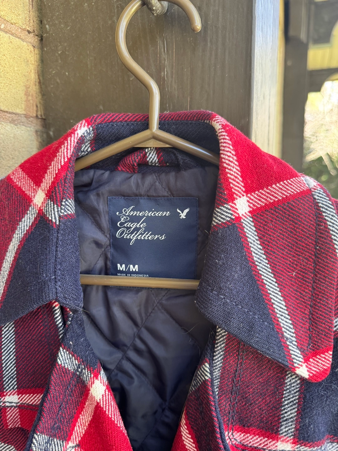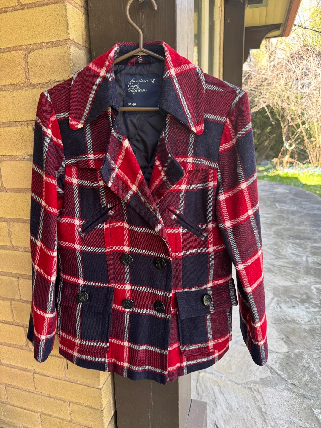 American Eagle Outfitters Red and Navy Plaid Coat - Size M