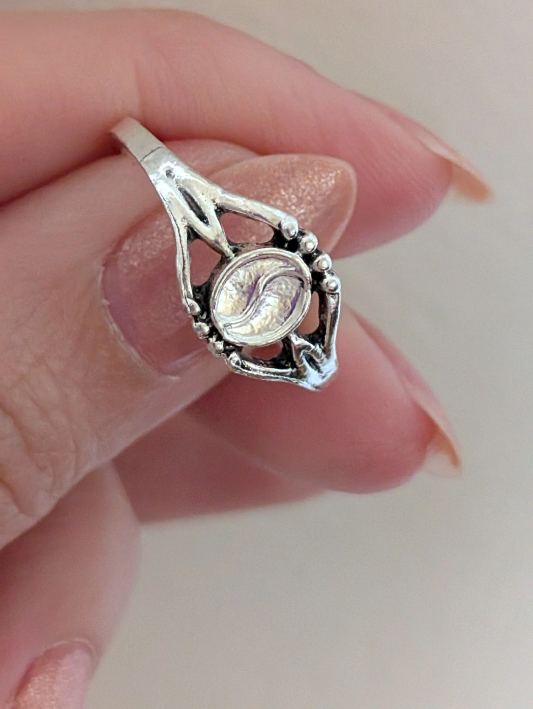 Unique Stainless steel ring eatures a clean (not a stone )yin yang symbol. Intricate design. Looks great on its own or stacked with other rings. Not a silver Never had any stone on it Size 8-9, see the pictures I forgot that I have it, never wear, maybe you are looking for a yin yang symbol in your ring collection?๐ Please pick it up at the map location โฌ๏ธ