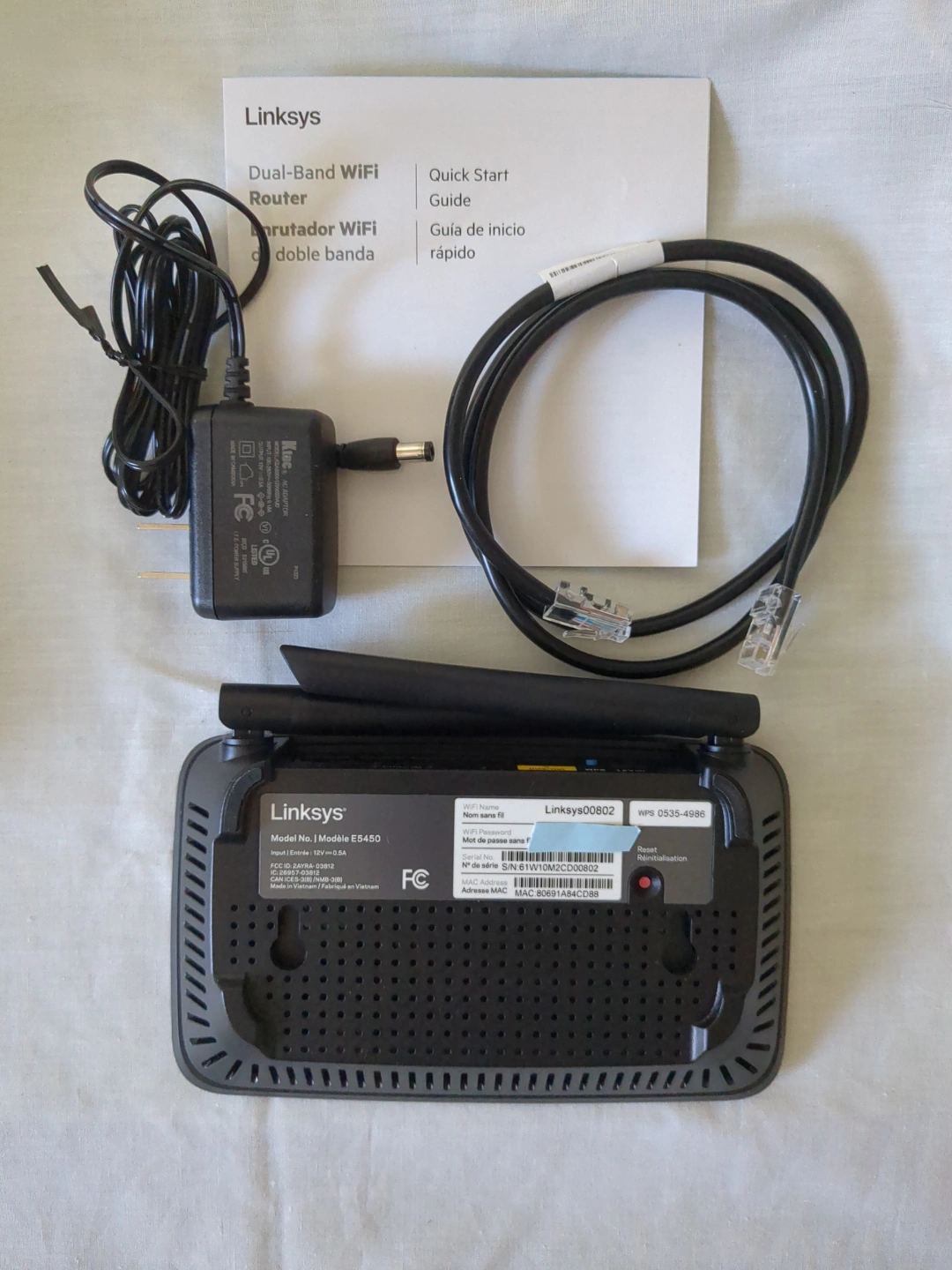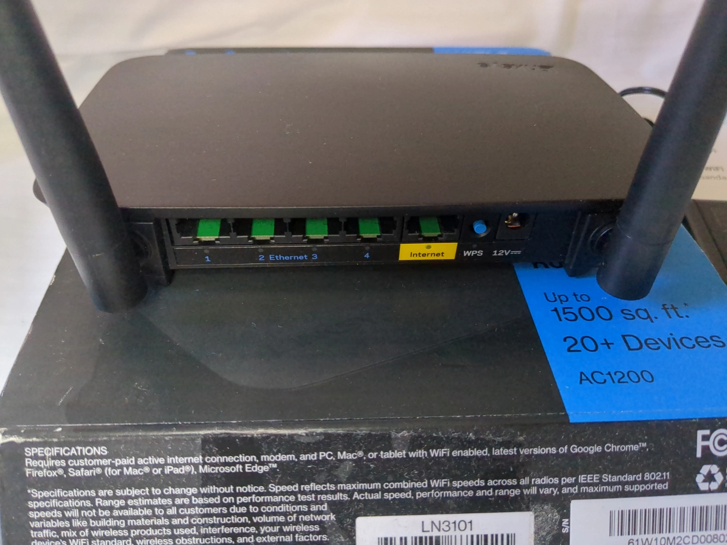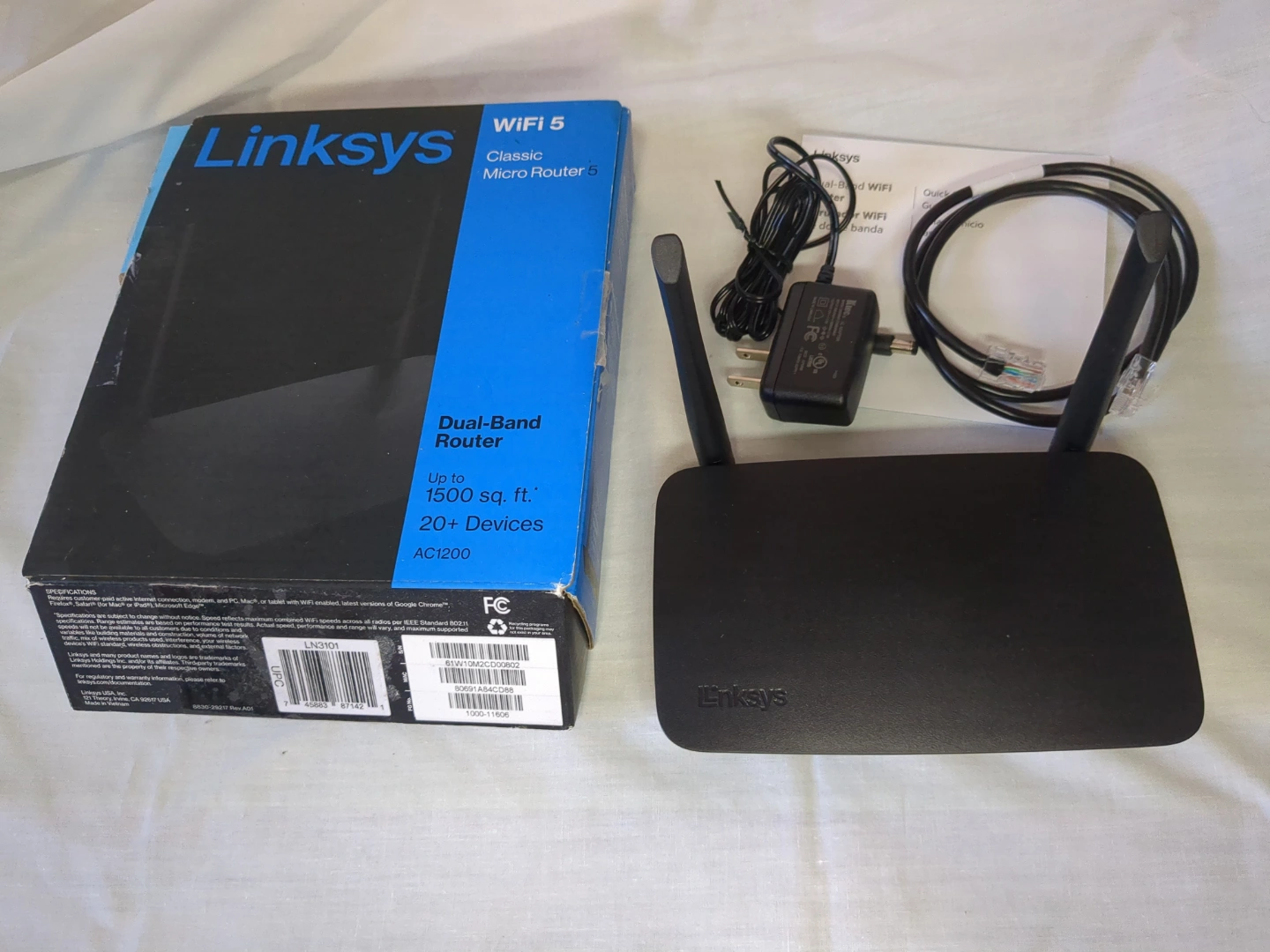Linksys Classic Micro Router. WiFi 5. Dual-band. Up to 1500 sq ft coverage. Supports 20+ devices. Includes power adapter and Ethernet cable.