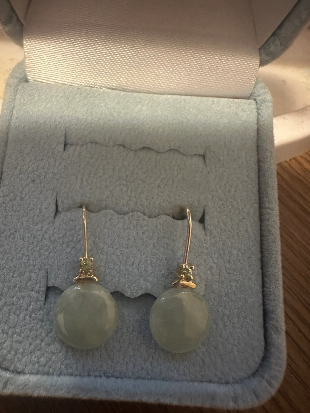 These earrings have a delicate, timeless look that’s perfect for both everyday wear or special occasions. The jade gives a calming, elegant tone, and the tiny diamonds add just the right sparkle.