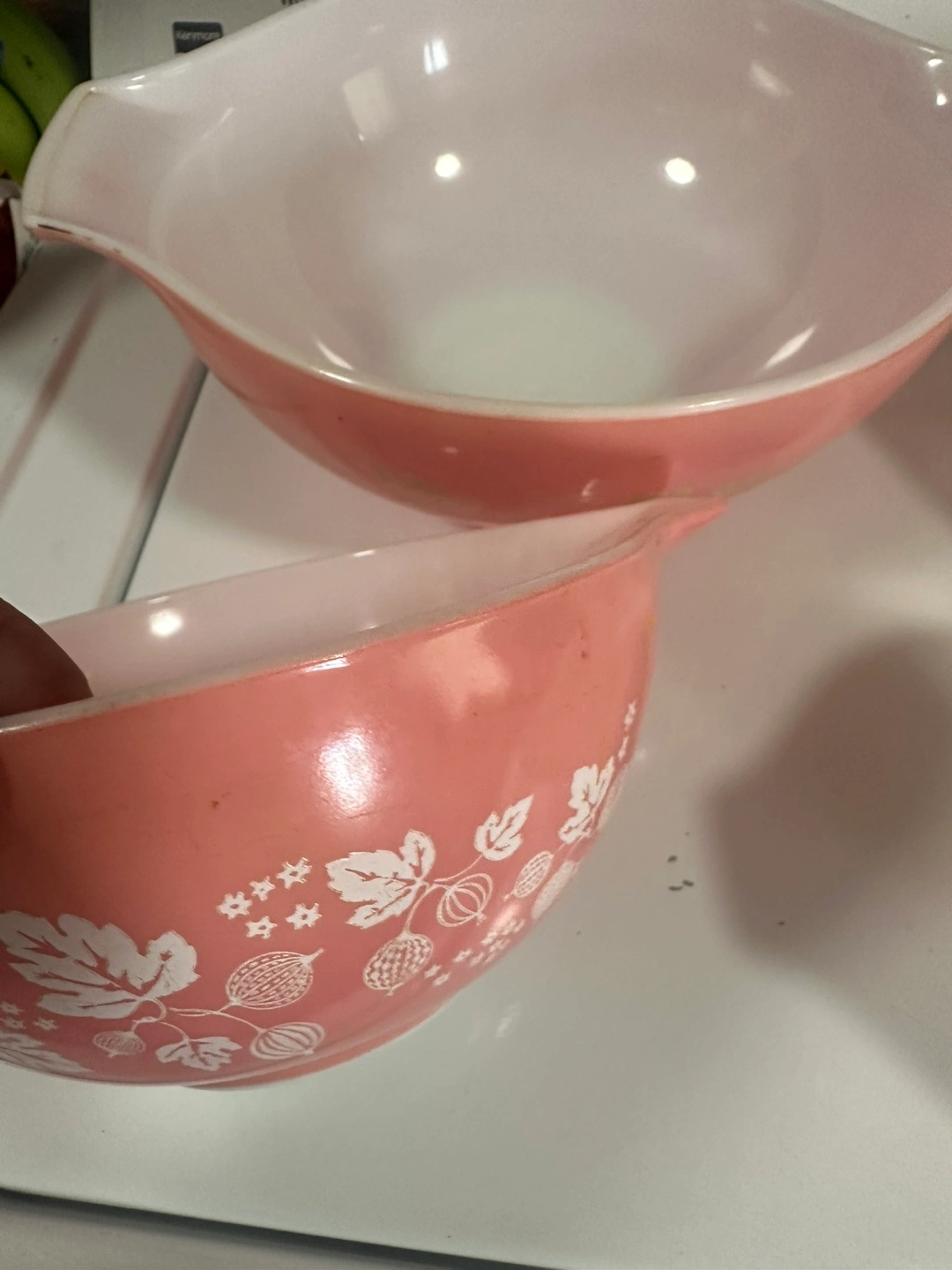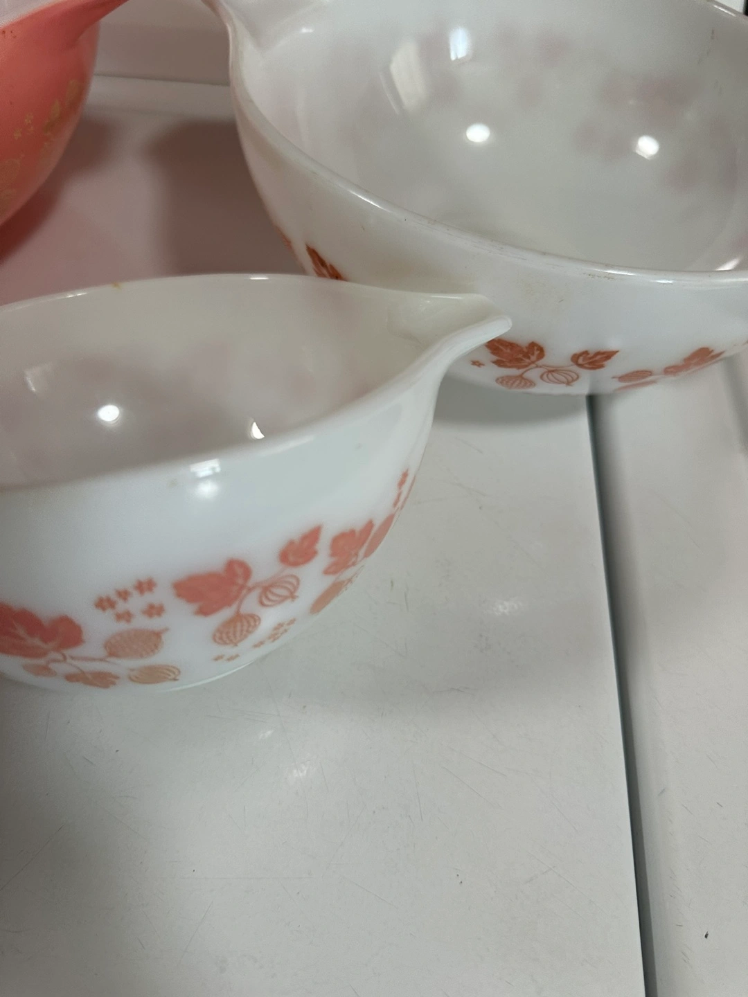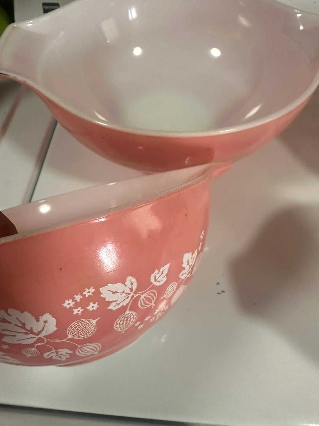 Vintage Pink Gooseberry Pyrex Mixing Bowls