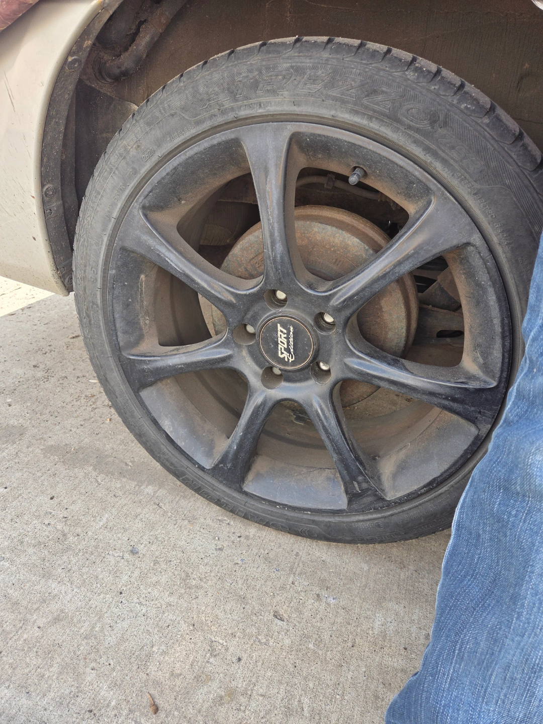 I'm looking to complete my set.one rim was stolen now I only have three! so if you have the exact same rim as these and are willing to part with it hmu.keep in mind I'm on aish so no I won't pay you an unreasonable amount of money and no I won't buy you're complete set.im simply looking to find it's lost relative!so if you have this rim kicking around collecting dust.hmu and we can figure something out .I would prefer free .18x8 I do believe.do not know the offset.its 5x114.3 bolt pattern.