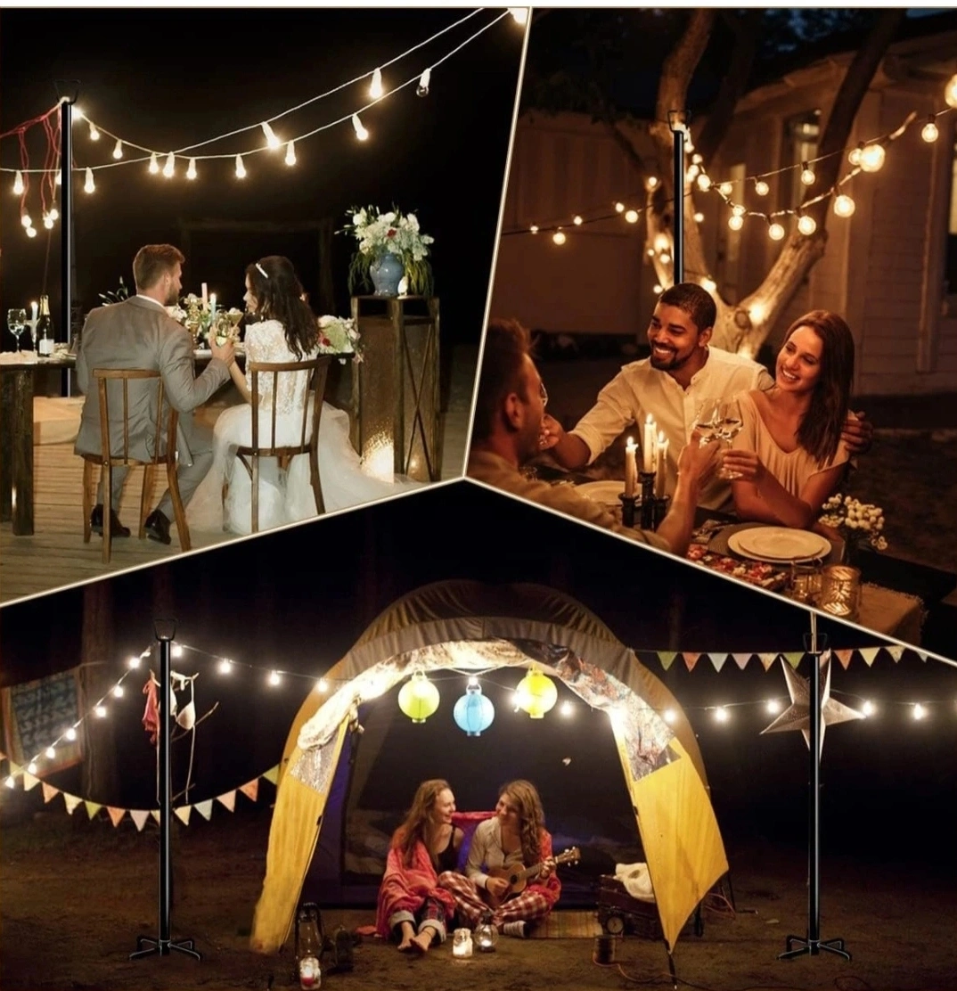 Outdoor/indoor party light stand. Ten foot tall metal pole. Perfect for weddings, parties, or camping. Includes base for stability. Easy setup. set of 6