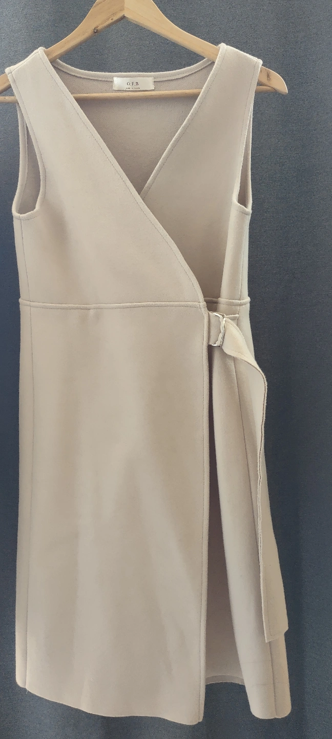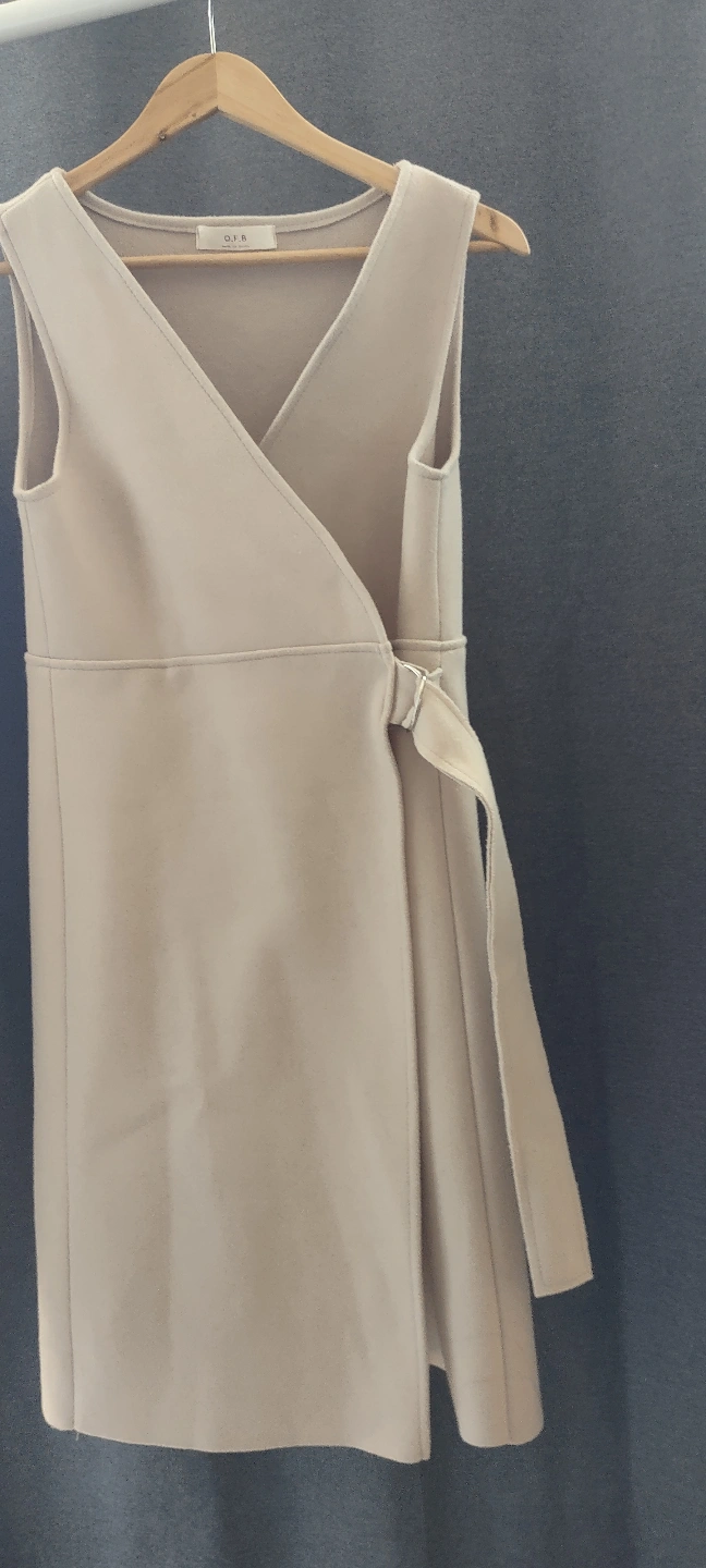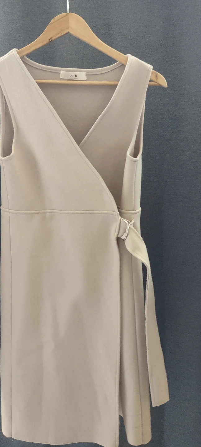 Stylish sleeveless wrap dress. Features a V-neckline and self-tie belt. Lightweight fabric, perfect for spring or fall. perfect for this weather