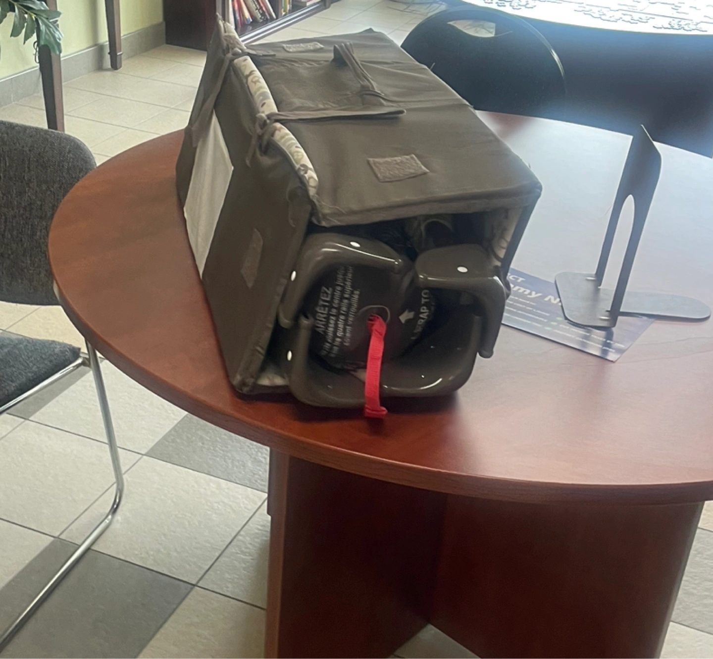 Portable playard, folds easily for storage. Brown and beige colour scheme. Includes carrying case.