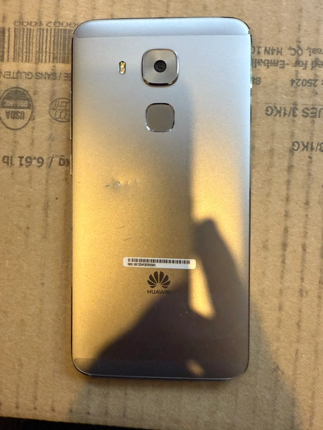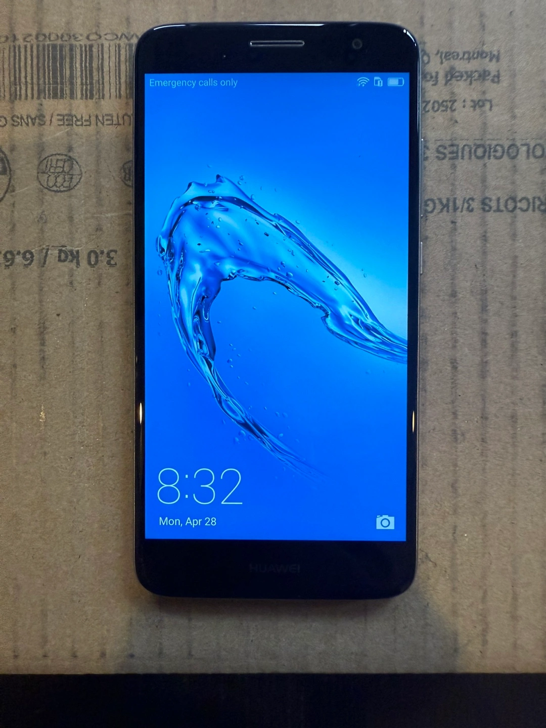 Huawei smartphone. Model number MLA-L03. Features 32 GB internal storage and 3 GB of RAM. It’s locked with Roger’s network