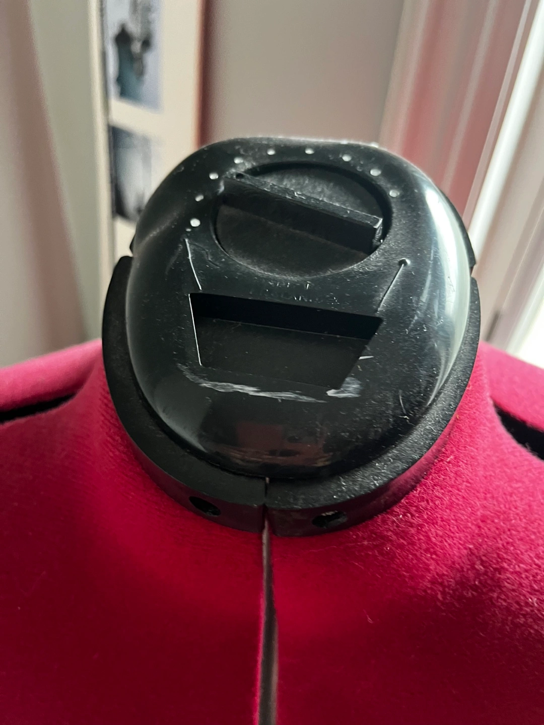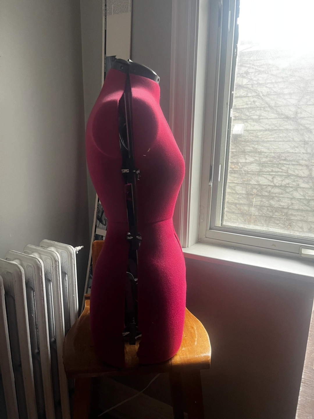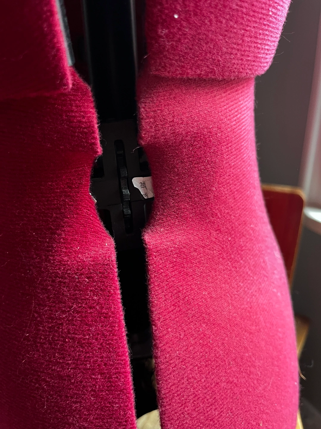 Burgundy coloured adjustable dress form mannequin torso. Features multiple adjustments to create your size. Great for displaying clothing or crafting!